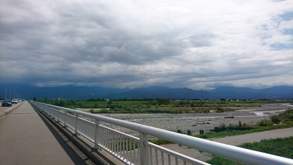 本日の富立大橋 今日は立山登山マラニック、この酷暑、選手は大変だったろうなぁ