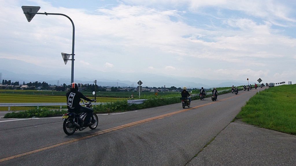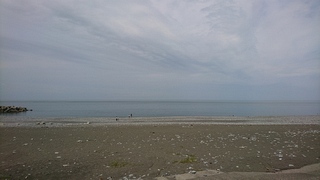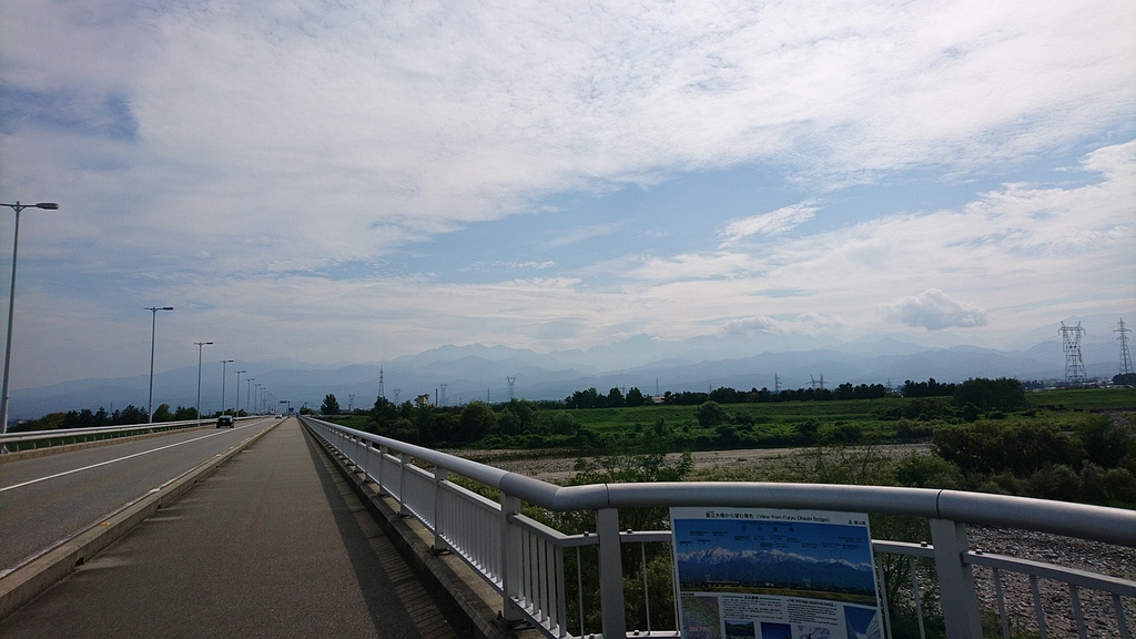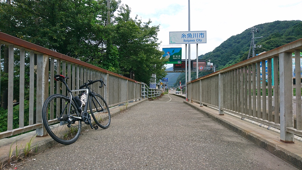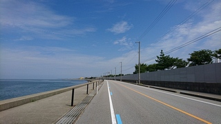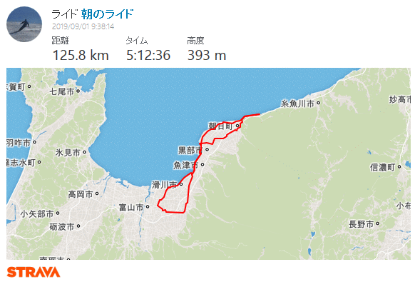 湾岸サイクリングコース東側延伸に気付く・市振 125km 2019年9月1日 ロードバイク乗り始めて今日から8年目のスタート。右アキレス腱が痛むのでヒルクライムは避け、フラットな湾岸を市振まで。往路は定番の富立大橋から。右岸土手でH川さんと車椅子ランナー3名が練習中だった。便利な駐車場を教えて頂いたり、ホイールの情報交換したりで20分ほど話し込む。いつもの道から上市経由で早月河口から蜃気楼ロード、魚の駅生地で1回目の補給、おにぎり食べてたら須坂の果実屋さんからリンゴ1個をご馳走になる。旧R8黒部大橋まで遡り、昔よく使った入善地内のコースから朝日町へ、笹川トンネル前の百日紅の花と再会。市振で補給その2は定番550円ラーメン。折り返すと弱い追い風、高瀬湧水をボトルに汲んで2回目の魚の駅生地、果実屋さんからナガノパープル1粒ありがとう、これは美味い。黒部からは時々アキレス腱が痛み、やわやわと回す。水橋で少しだけ雨に降られ、今日も常願寺左岸から帰宅。 宮崎駅前から境川河口まで青線が伸びてた。かつて防潮堤沿いを走った時には砂利だらけで二度と走るものかと思ったが、税金パワーにびっくり。これで富山湾岸サイクリングコースは新潟県境〜石川県境となり、富山湾岸UMとほぼ同じになってしまった。パクリやがってー(笑)ではあるが、きちんと維持して頂くと助かる。いやしかし、ロードバイクに乗り始めた2012年はもちろん2014年にもまったく無かった青線が湾岸全域に塗装されるとは想像もしなかった。