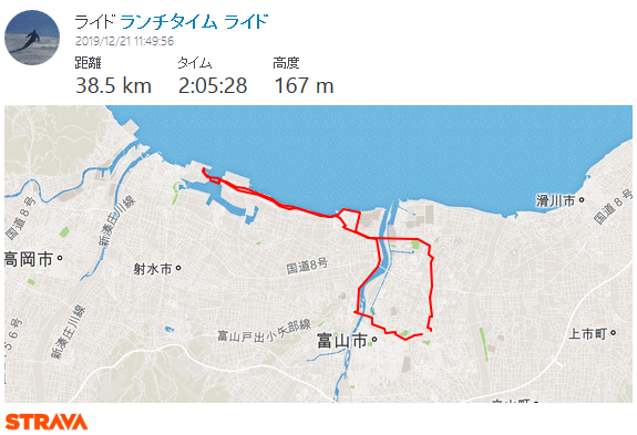 令和元年ころがし納め・海王丸パーク 42km 2019年12月21日 12時ちょい前に出発、神通川左岸提から草島へ、湾岸を新湊まで、1244の渡船に間に合わず新湊大橋あいの風プロムナードを徒歩、海王丸パークで写真一枚撮って折り返した。帰りは1307の渡船に乗船。海老江から旧道、あわよくば常願寺左岸も走ろうと思ってたが四方で少し雨に降られ断念。八重津浜に寄って荻浦橋から戻った。 12月に入り遊び道具を自転車からスキー板に変え、既に2回滑っていたが今週は暖か過ぎで雪足りず滑走断念。11月に腰痛再発で11月2日が今年の転がし納めと思ってたが、スキー出来ないならもう1回転がしとこか…で、ロードバイクに乗り始めて8年で初めて12月のライド、しかも21日とは信じられない。 ![]()