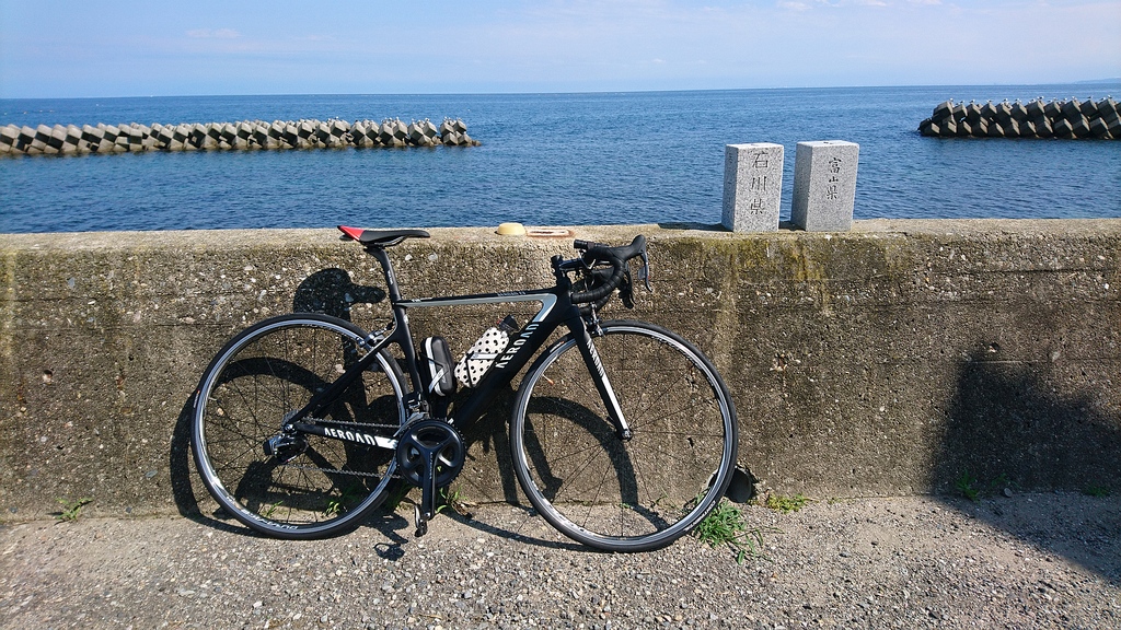 道の駅いおり・江泊 132km 2020年 7月20日 今年の梅雨は大雨で各地に被害、しかも週末にばかり降り、6月20日以来1か月ぶりのライドとなった。出発時東西で迷ったが久々の青空で海を観たく道の駅いおりを目指し11頃出発、北大橋の信号待ちでアルコール消毒液とクリートカバー入れたサドルバッグ忘れたことに気付くも、マスク持ってきたからまぁいいやでGO。梅雨の晴れ間とは言え景色は完全に夏、タチアオイが伸びニイニイゼミの声が増えキリギリスも鳴き出した。1144の渡船に合わせたペースでちょうど渡船が着くタイミングで堀岡着。今日は30q毎に休もう最初の休憩は多古爺で昼飯と思うも扉の外まで待ち行列で断念、阿尾デイリーでおにぎりあんぱんオレンジジュースの昼食。向かい風の中、途中の何度かの上りでじわじわ腰痛が出始め、ヒイヒイ言いながら道の駅いおり着。此処はいつ来てもバイク乗り多数、御約束の様に喫煙率高くて煙くて臭いので風下に陣取り、スポドリ1本補給。このまま戻るつもりであったが江泊の高台からの景色を観たくなり崎山半島へ。お気に入りの景色堪能後折り返す、腰痛はどんどん悪くなり、身体全体もバテてきてポタリングになりかけ、氷見港前のファミマで補給休憩。島尾からは湾岸、海開きはまだだが海水浴や所謂日本語のBBQを楽しむ人多数。雨晴駅横の歩行者自転車専用踏切を強引に渡る車がありビックリ。1637の渡船に合わせて海王丸パークで時間調整。渡船はteam自転車貴族のジャージ集団、船上で写真撮ってあげたが…センスゼロのオッチャンには理解できず。ラスト10qは射水線跡の粗い路面が嫌で神通川左岸、疲弊しまくって17時30帰宅。 弐号機今季初乗り、aeroadは固いけど進む。タイヤGP5000もなかなか良かった。タイヤ幅は23cなのに25cみたいだったGP4000sやGP4000sIIよりも明らかに狭く好感、グリップ力も向上してる。なお、耐パンク性能は僅かに低くなったらしい。軽さや速度はもちろんBORA ONE+チューブラーには及ばないが、トラブル時の安心感でdura c24+GP5000は最高の組み合わせの一つと思える。さて問題は腰痛、2018年秋に腰を痛めてからどうにも良くない。思い切ってハンドル起こす手もあるけど何か他に良い方法無いだろうか。 ![]()