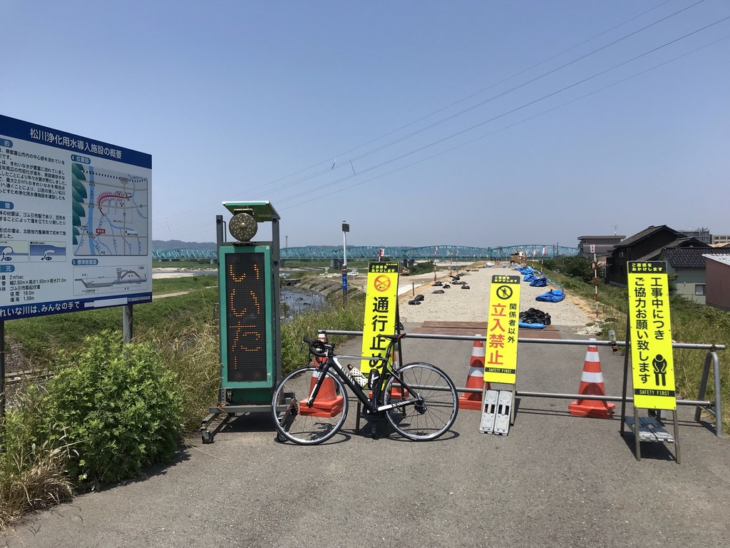 中滝・横江〜熊野川、ディレーラーハンガー曲げた…47km 2021年 6月10日 有給休暇。昨夜充電仕掛けたeTapのバッテリーを取り付け、今季初の弐号機aeroadで出発。常願寺右岸東の道路から岩峅寺。常西常東用水分水槽前から常西用水左岸連絡水路橋へ、中滝発電所上空に猛禽3羽が輪を描いてるのを発見、此処の崖はハヤブサの営巣地であるが羽は明らかにハヤブサではなくオオタカかサシバみたいだが大きさはこれらより一回り大きい、何だろう(…帰宅後に調べてハチクマと同定)。先々週、NHKこころ旅のチームが走った道を逆行して横江頭首工へ。欄干に自転車立て掛けて撮影をとしかし微妙に基礎が高く…その上に載せて写真撮ってると風にあおられ弐号機落下転倒。一見無事に思えたが、変速不調でディレーラーハンガーが曲がったのは確定的。当初予定では熊野川沿いから大沢野八尾長沢と回って帰るつもりだったが、熊野川を下って富山市街経由で12時過ぎに帰宅。すぐにキャニオンのサイトでディレーラーハンガーを発注と間抜けを反省、すまん弐号機。 今回、青柳新から熊野川の右岸土手を下ってみた。41号線手前が一部砂利道でそこを避ければ北陸道下まで舗装路が続いてた。健康パーク前に広田用水の補給水路の取水堰があり、この水路が市街地をくねくねとはるか我が家近くまで続いていることを想像…宿題ができた。歴史を整理すると、広田用水補給水路は大正13年に赤田地内の土川の頭首工で取水開始、水を補うために熊野川の水を土川に補給する水路を昭和13年に完成、しかし土川の水質が流域の宅地化で悪化したため、熊野川の水を土川を経由せずに広田用水へ補給水路を平成5年に完成。いつかこの広田用水補給水路を取水堰から合流点まで辿ってみよう。 ![]() ![]() |