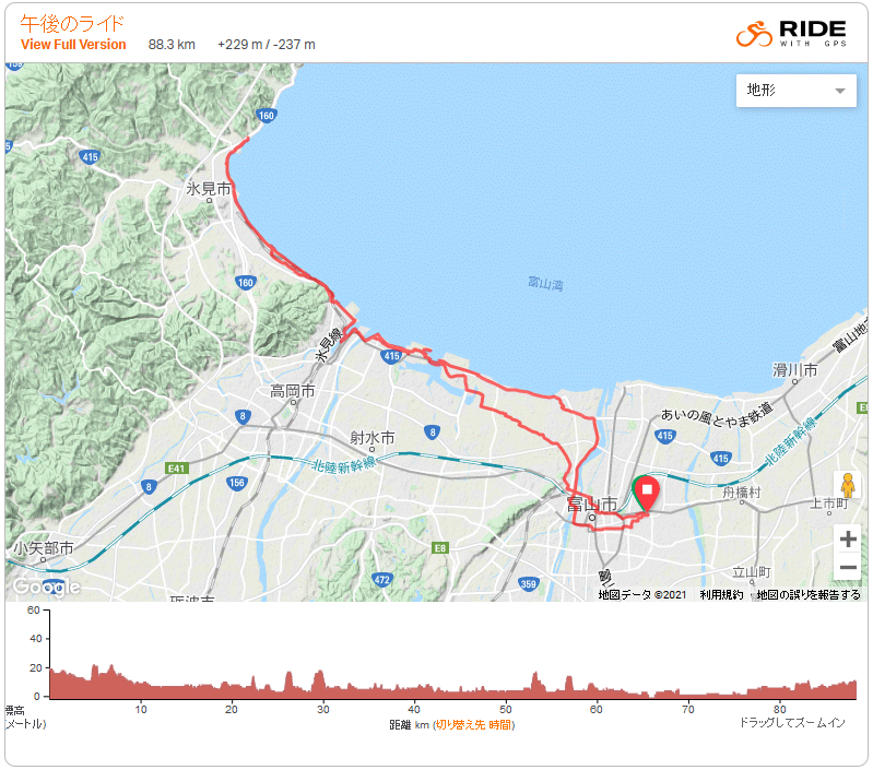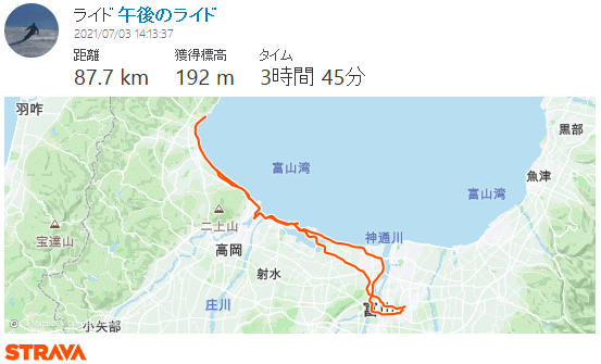 阿尾デイリーストア 87km 2021年 7月3日 メジャーリーグ中継観てたら大谷選手が2本塁打さらにサヨナラの帰塁スライディング決めたりついつい最後まで…すっかり遅くなり、14時過ぎにゆるゆる出発。千歳町〜駅北に回り北大橋から射水線跡道路へ、いつもの道の一本南側の道に入ってみる。ちょっと迷いつつ新港貯木場から七美に抜け、1514の渡船、海王丸パークで一枚撮ってさらに西へ。当初雨晴までのつもりだったが道の駅が結構な人出で密密、ならば氷見まで行こうで結局阿尾のデイリーまで走行。それなりにエネルギー切れを感じ、ドデカミン+レモンタルト+バナナでたっぷり補給休憩。折り返して島尾からは国交省管理道路で雨晴、新湊市内は放生津八幡前を通り、1537の渡船まで海王丸パークぐるぐる時間潰し。堀岡からR415と神通川左岸道路、神通大橋経由…水が飲みたくなり泉町のお地蔵さんで給水して帰宅。なるべく往復で道路が被らない様に走ってみた。 御廟口の牛首用水でオニヤンマ今年初見、至る所でニイニイゼミ多数、アガパンサスやネムノキにキョウチクトウが満開、アジサイの花は色あせてきた。梅雨明けはまだまだだが真夏が近付いてきた。七夕飾りがあちらこちらにあり、コロナ禍でさえ無けりゃ夏祭りが始まる季節、今日はiPhoneでなく2012年製ソニーTX20で撮影、古いけれどライディング中に使うには最高のコンデジ、電源オン〜レリーズまでが非常に迅速かつラクチンである。かつてTX5を使ってたので操作感が懐かしくも快感。何でもかんでもスマホで済ます時代だが、単機能単体ならでは素晴らしさ実感。 ![]()