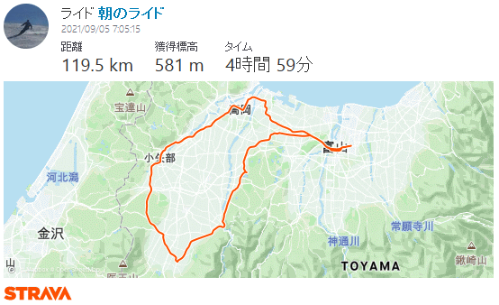 和田川左岸台地から庄川井波城端小矢部 120km 2021年 9月5日 7時10分くらいに出発。いつもの旧8一本南の農道を西へ。呉羽は梨の落実がすえた悪臭が漂う…まぁこれも秋。櫛田神社から和田川左岸台地へ、青い空に片雲と収穫前の黄金色の稲、素晴らし過ぎる。景色が気に入ってる場所だが3年ぶり。これまで素通りしてた増山城址と和田川ダムに寄ってみた。富山にも未訪の良い場所はまだまだありそう。R359安川に下り庄川町へ、庄川荘もやまぶき荘もコロナ禍で休業中。三楽園前からR156をちょっと下りて井波へ、瑞泉寺前で写真数枚撮って城端へ。K21走るとグランフォンド思い出す。城端入って久し振りの手描きラムちゃん。市街に入り古い街並みちょっと回って善徳寺前から城端駅、腰痛が始まったのでトイレ兼ねて小休憩。R304で福光、腰がどうにもダメで道の駅で補給&給水休憩ちょっと復活。R302→K42で小矢部へ、埴生八幡宮初訪、想定外に立派な義仲像が大きい、参拝はいつか家族で行こう。メンヘル小矢部裏からK32小矢部川右岸土手、旧道のK266+K254を道なりに高岡へ。いつもなら羽広から高岡駅前に出るが今日は直進、ヤマゲンの店の前を初めて通る。横田内免と古い街並みを過ぎ大坪での左折を忘れて気付けば高岡市役所。高岡高裏から裏道に入り能町口、新港経由のつもりだったが渡船の時刻に噛み合わないので牧野大橋からR8バイパス側に戻り、射水署前から旧8ブルームーンの四叉路、旧8は交通量多いものの路側はあるのでそこそこの速度を維持、13時ジャストに帰宅。 ロードバイクに乗り始めてから9年経過、ついに10年目が始まった。長い間独りで走り続けていると、仲間と一緒に楽しんだり、イベントに出たり、レースに出てタイムを競ったり…かつて興味があったことにあまり魅力を感じなくなったが…それなのによく続いてる原因は何だろう。身体を動かしつつ、やはり一人でのんびり気ままに走れること、毎回小さな旅気分を味わえることが大きな要因かな。正直なところ今日は宝達山に上るつもりだったが、射水平野から西を望めば雨雲が宝達山〜中能登方面に…そもそもコロナ禍+富山市まん防+富山アラートステージ3で県境を越えるのは褒められた行為でないしで今回のコースに変更、結果的に未訪の増山城址や埴生八幡に寄ったり色々良かった。前々回はハンドルを上げ、前回は腰痛対策でサドル下げたが効果分からず、今回乗りながら色々試して仙骨を立てずに前に寝かせステムの真上にアゴが来る感じで背骨を伸ばして走ればあまり痛まない様に感じた。3年前までは「自転車で腰痛ってなあに?」と言えるくらい腰痛とは無縁だったが、老化と筋力低下さらに整形で軽いヘルニアの気ありを確認済み、無理できない状態であることは分かり切ってるが、何とーなくの工夫で多少は改善できる気がしてきた。 |