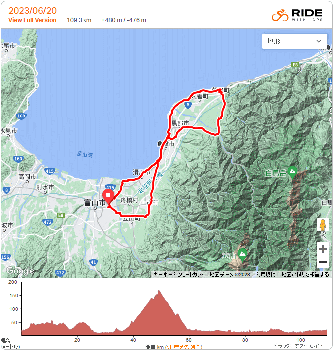 愛本から泊 109km 2023年 6月20日 前回ライドの2日後に右膝に水が溜まり、2週間ぶりの自転車。弐号機に久々のBORAを装着するも、速度センサー用磁石が付いて無かったり、eTapの電池が何故か残量乏しかったり、タイやの空気圧調整し忘れて戻ったりで今日も出発遅くなり13時半頃ようやくスタート、富立大橋からいつもの経路で上市滑川魚津から湾岸、海沿いはキツイ向かい風、今日も腰痛が出始めちょうど30km地点の経田漁港で1回目の補給休憩(持参おにぎり)、いつも通り荻生から旧道、箱根清水で水汲んでスーパー農道にするか迷ったが旧道を愛本まで上がり舟見からのボーナスステージ、朝日中学校過ぎて泊市街に向かい泊駅でお手洗い。赤川橋で2回目の補給休憩(おにぎり2個目)。帰路は追い風、腰はともかく右膝の違和感が悪くならない様に軽く回す。日没前には帰宅したく、魚の駅や海の駅には寄らず道の駅滑川までノンストップ(石田で水汲んだ以外)。滑川港で缶ジュースの糖分補給。常願寺左岸から帰宅。 2週前と同じくロードバイクに最適な気温、BORAはよく回るし弱い向かい風なら気にならず、初めての25Cはムチッとグリップする感じも悪くなかった。夏は進み、そこかしこでキンヒバリやマダラスズの鳴き声、陽当たり良い場所ではアガパンサス開花、麦畑の多くが大豆畑に変わってる。次回はいよいよ県外遠征を考えたいが、右膝が不安。 |