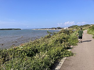 柴垣海岸散策と能登ドライブ 3連休最終日、無職でサンデー毎日の自分と家内はともかく子どもは明日から仕事、どこにも行かないのは可哀想…と言うことで、昼から能登方面へと出掛けた。R415で氷見から羽咋へ、駅前の田辺食品でイカだんご購入、ちょろっと千里浜を走り今浜のヴィラ千里浜1階の千里浜ガーデンで昼食、柴垣海岸へ移動し長手島〜海水浴場〜旧北鉄能登線跡サイクリングロードをちょっと散歩3キロ(暑くてこれ以上は断念)。ここは5月の連休にポタリング、8月にジョギングと何度も来たくなる不思議に素敵な場所である。散策後、志賀町から七尾市に移動、和倉温泉は混んでるだろうで猿田彦温泉で入浴。深浦長浦からツインブリッジ展望台。能登島経由で能登島大橋〜香津浦しおさいロード。七尾のどんたくアスティ店で買い物、トップワンで夕食弁当引き取って帰路に。三連休でも混雑に出会うことなくスムースに移動かつミニ観光、半日とは言え良い旅だった。 |