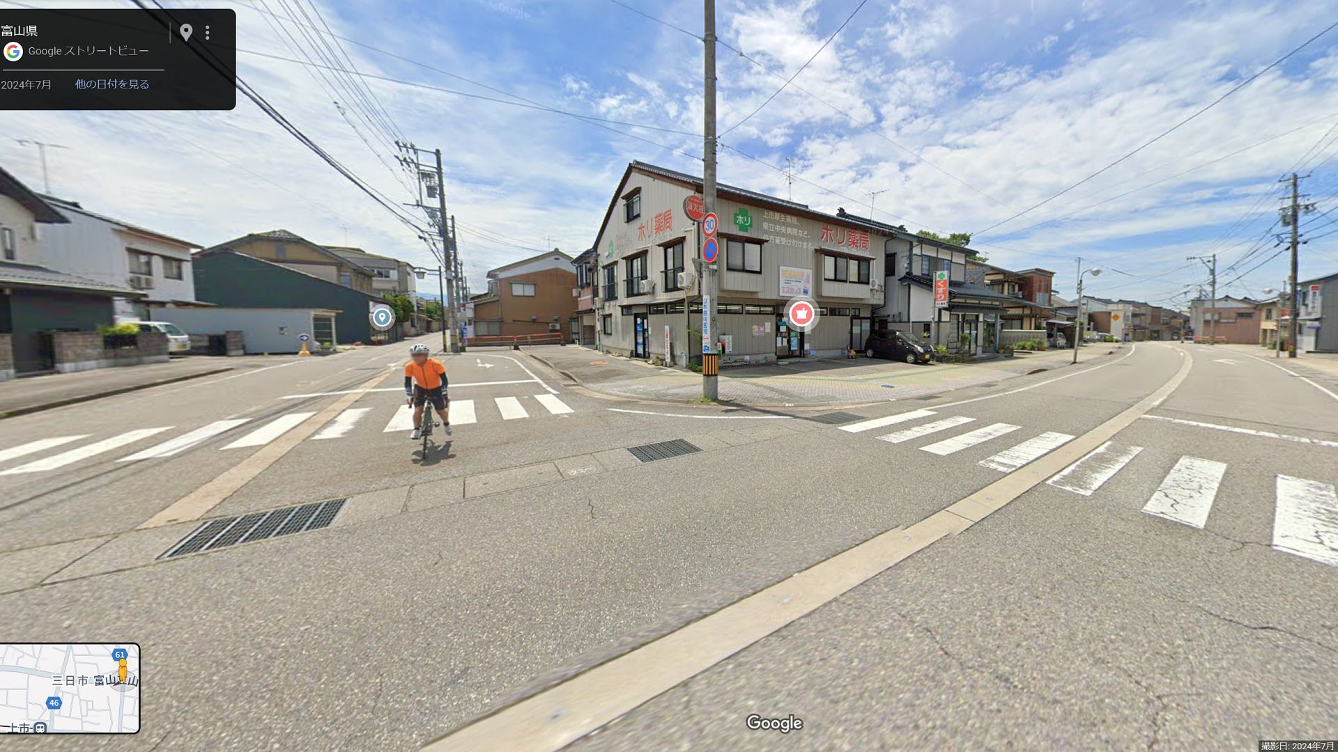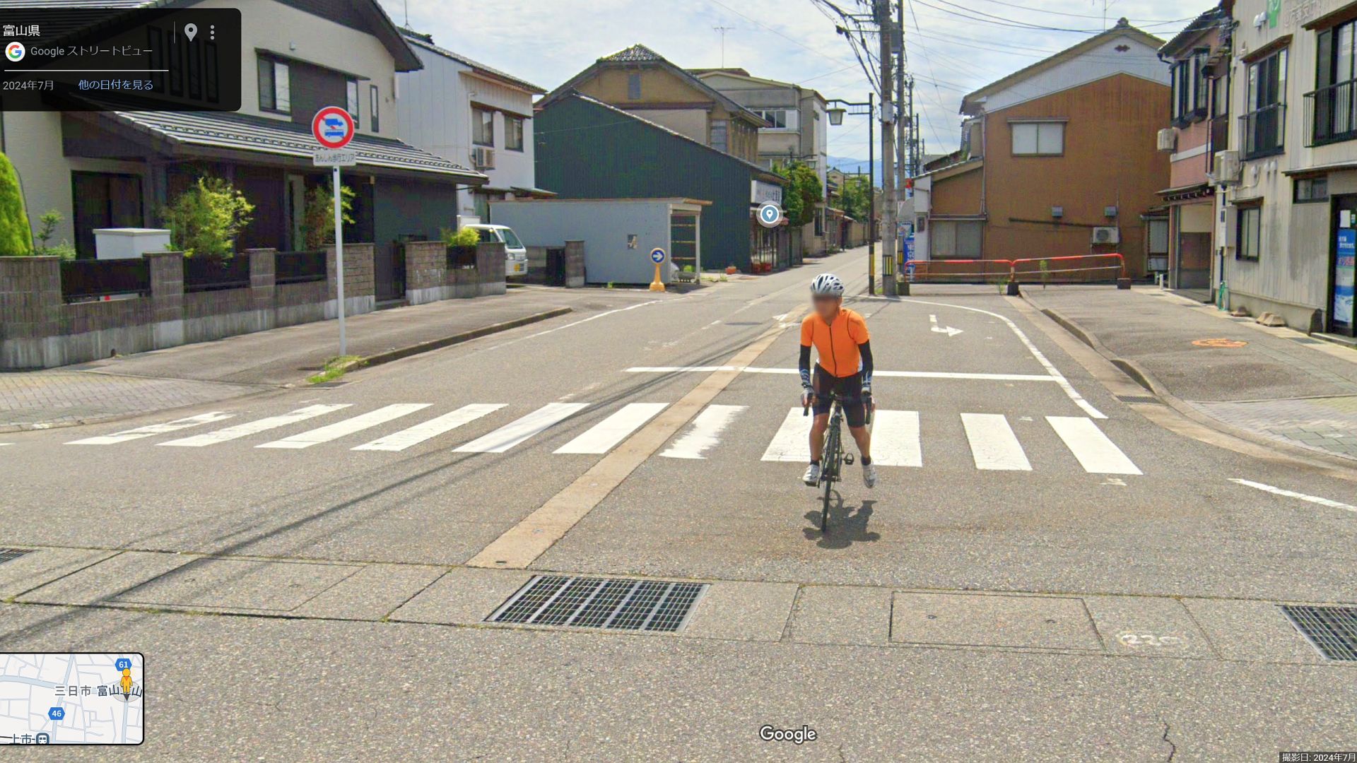 後日(9月2日)、ストリートビューに映り込んでるのを確認。左から来たgoogleカーが目の前を左折、自分は右折でそこで出合ってすぐ分かれるピンポイント遭遇だった。 |