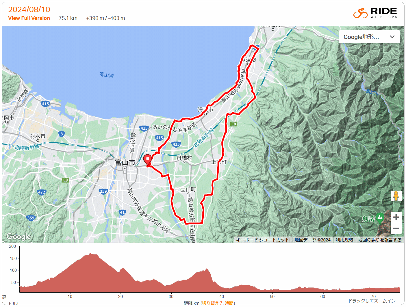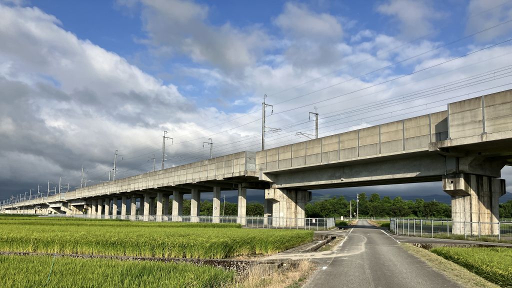農道金剛寺〜経田、帰路は湾岸 75km 2024年 8月10日 ロードバイクで週1回は出掛けたいと思いつつも、旅疲れや体調不良を言い訳に3週間も乗っていない。お盆に入ると家族の帰省もあって出難くなるので行くなら今日か…で、15時15分頃出発。北風が強く、北上時は下りそして帰路は追い風になるルートとする。富立大橋から常願寺右岸、北陸道下で土手からK68に下り南へ。米道から農道金剛寺を北上、下り+向かい風でとても涼しい。立山町総合公園から段丘上に上がりスーパー農道から上市、上市川河川敷には巨大御招霊ニオトンボ。向かい風のK3を滑川へ、走行30km過ぎのローソン滑川ICで補給休憩(おにぎり、チキンバー、オレンジジュース)。R8北野でK3を外れスーパー農道まで上がり向かい風に備えて位置エネルギーを稼ぐ。早月川を渡ると山側に虹が出現、角川への下りで少し降られる。観音堂から角川沿いを大光寺、いつもの細道で魚津市街、K314を片貝川まで北上し経田漁港から湾岸、蜃気楼ロードは追い風巡行、北鬼江のT字路にcafeタスメットなる店がOPENしてた。魚津港の震災復旧工事完了。魚津水族館の自販機で2回目の補給休憩、滑川までのTTは自己記録に30秒以上及ばず…でも脚には良い刺激になった。滑川の海辺の生活跡にUZUなる店が営業中…お好み焼き店らしい。滑川市中心部の旧道はランタン祭りで車両進入禁止、祭りに興味はあるけど日没が迫っており、海岸沿いの裏道を抜ける。ライトを点灯、常願寺左岸から日没とほぼ同時に帰宅。お盆直前、てんたかく等の早稲は収穫直前の色、富富富やコシヒカリも穂が伸びた。農道金剛寺は上段手前で物凄い蝉時雨、アブラゼミミンミンゼミニイニイゼミヒグラシ4種の合唱、富山市街で鳴き出したツクツクボウシは未だ。上市町ではふるさと観光上市まつりの準備、滑川市街はランタン祭りと夏祭りシーズンも終盤。常願寺川では、オオヨシキリはもう囀らず、代わりにカンタンが多数鳴いてた。太平洋高気圧の中心が東に外れ、日本海に本来移動性である高気圧が停滞、このおかげで富山は意外と涼しく、そこに三陸沖を台風5号が進んでさらに北風を運び…酷暑の西日本や東海地方には悪いけど、ずっとこのままの8月ならと。 |