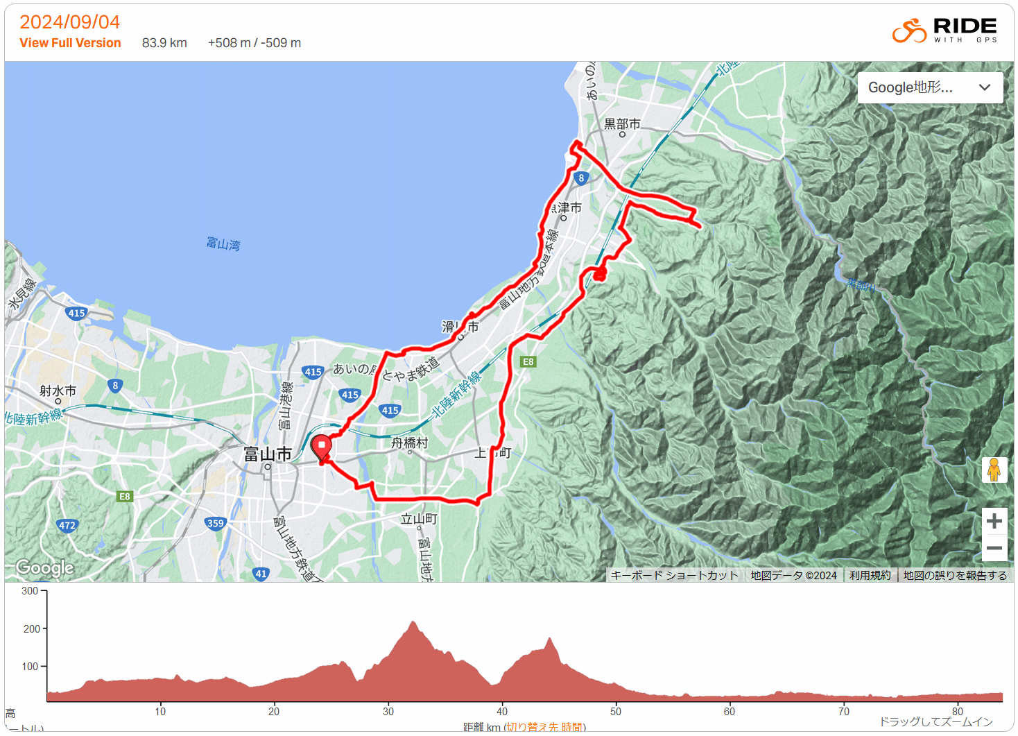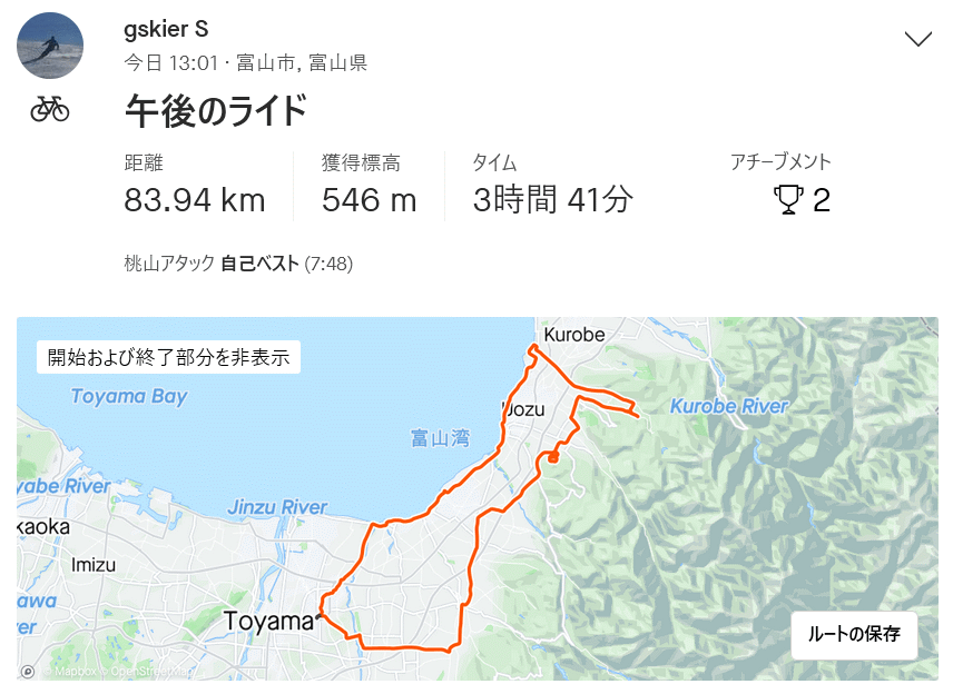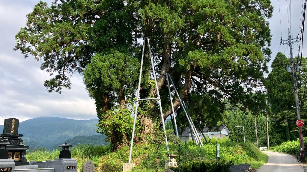 桃山運動公園〜長引野の立山杉巨木2本〜石田浜 84km 2024年 9月 4日 ロードバイク乗り始めて13年目が始まった。8月は暑さを言い訳に1回しか乗らなかったが、ようやく最高気温31度で気力も多少出ておよそ1か月ぶりのロードバイク。今日は西に行きたかったが北東の風で帰路は追い風にしたく東へ、どうせなら少しでも行ったことのない場所へと地図を見て、長引野の2本の巨杉を観に行くことにして13時過ぎ出発。上市まで定番ルート、滑川地内のupdown避けて新幹線高架沿いにスギノマシン近くからスーパー農道へ。早月川を渡り、桃山運動公園に上って陸上競技場の階段で持参おにぎり補給休憩、ここからの富山湾と能登半島の景色は本当に良い。片貝川への急坂をノーブレーキで下り、これまたペダル漕ぐ必要ない天神山トンネルが涼し〜〜。小川寺北交差点を右折、布瀬川左岸を長引野へ。長引野は故義父と一緒にユリを買いに行ったのが初訪でそれ以来の2度目、まったく土地勘無しの地図頼み。坂を上がって長引野に入り、県道合流後に白山社を越えた農業用倉庫の横にある桜が恐らく「長引野しだれ桜」か。さらに直進すると左手に田んぼの中に立つ1本の巨木が見えてくる、これが「黒沢稲荷の大杉」であり、web調べで樹高30m・目通り幹囲7.3m・樹齢不明だが500年の情報もある立山杉であった。1本木立なのでとても立派に見える。黒沢の集落からさらに東進し大沢の集落へ入るといきなり「大沢の地鎮杉」がぬっと現れる。こちらは富山県指定天然記念物、web調べで樹高30m(台風で折れる前は40m)・目通り幹囲8.5〜10m・樹齢500〜800年の立山杉、他の木もある集落の地鎮杉のため黒沢のスギより目立たないが樹齢ならではの風格がある。かつては無かった人の手による支柱に地元の人たちにさぞや大切にされていること想像できる。2本とも片貝川洞杉群の樹齢千年の巨木に比べれば若い木なのだろうが、簡単に会いに行ける立山杉の巨木としてはとても貴重である。 K67で布瀬川右岸へ渡ると黒部市、K125を左折し釈迦堂〜阿弥陀堂〜東布施と下る。新幹線高架手前でスーパー農道K128と合流するが今日はこのまま布瀬川沿いに進み、田家新から石田へ抜ける。石田浜ポケットパークの湧水で給水、この場所は2012年9月1日に初めてロードバイクで往復した折り返し地点、あれから12年あっと言う間である。石田浜の防潮堤に上がって休憩。帰路は湾岸を追い風に乗って一気に、海の駅や滑川港にも寄らず水橋から常願寺左岸道路で帰宅。長くはない距離であったが、巨杉を見る目的・ほぼ初訪の土地・僅かながらもヒルクライムありと満足できるライドであった。 最高気温31度ではあったが、この夏(秋だが)と言うか8月以降でやっと秋らしい快適な空気を感じられた。山際の蝉時雨の主力はミンミンゼミとツクツクボウシ、ニイニイゼミはまったく鳴かずアブラゼミも減った。川沿いにはアキアカネの群れ。てんたかく等の早場米は収穫完了で稲刈り後の田んぼが増え、コシヒカリの稲刈りも始まった。耳でも目でも秋を感じるが、また明日から酷暑が帰ってくる予報、早く涼しくなって欲しい。 |