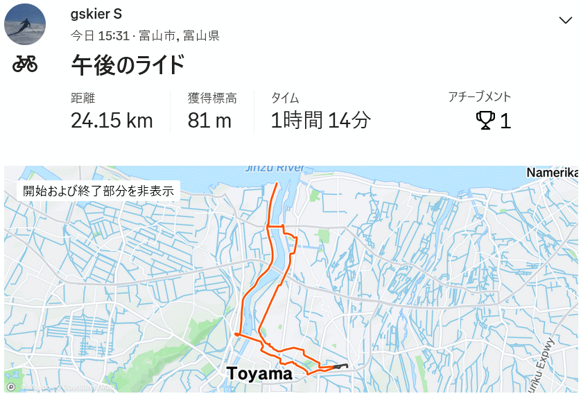 神通川河口まで、FLR初履+アクションカムテストpart2 24km 2024年11月9日 今日は留守番にて自転車乗る予定は無かったが、シューズ新調第2弾で12年使ってるR087も崩壊寸前、その代わりとして注文した「FLR F35 KNIT LACE」が想定外に早く届き…試したい気持ちがウズウズ、とりあえずクリートをR087から移してたら家族が帰宅、ならばちょっとだけ出掛けさせてもらおうと、ridleyにアクションカメラinsta360go2を取り付け、FLR履いて15時半過ぎに出発。新シューズの感触確かめつつ時々動画を撮り、停止した際はスマホで静止画も撮影しながら、ぶらぶらと神通川河口〜環水公園とポタリングしてきた。昨日ロングタイツと半レーパンで寒かったので、裏起毛のウインドブレーカーブルロングパンツ履いたらとても暖かだった。上はぶかぶかのmontbell長袖ジャージこれは分かっちゃいるけど空気抵抗大きく向かい風だと進まず辛かった。さて、新シューズLR F35 KNIT LACE、8800円と今時では激安初級シューズであるが、内反小趾の小指の付け根が痛まないので自分には快適そのもの、急がずのんびり走るには最高のシューズと言って良い。aeroadに乗る際履いてるRC07は足をガチガチに固めて遊びは無くパワーが逃げず、ガンガン速度出すには良いけどやはり内反小趾が痛むため、アッパーやインソールの加工が必要になってしまう。その点、FLRのニットは加工不要、シューレースのビンディングシューズも唯一無二であり何故今までこれを知らなかったのかと…。アクションカムは2日目、proモードから吐き出す動画の手振れ補正はなかなか強力だった。切り出し静止画は今一つではあるが、この自転車の記録には十分である。今後は、乗車中はアクションカムの動画でサクッと、停止中はスマホやコンデジでじっくりと撮りたい。 |