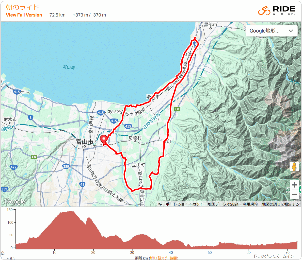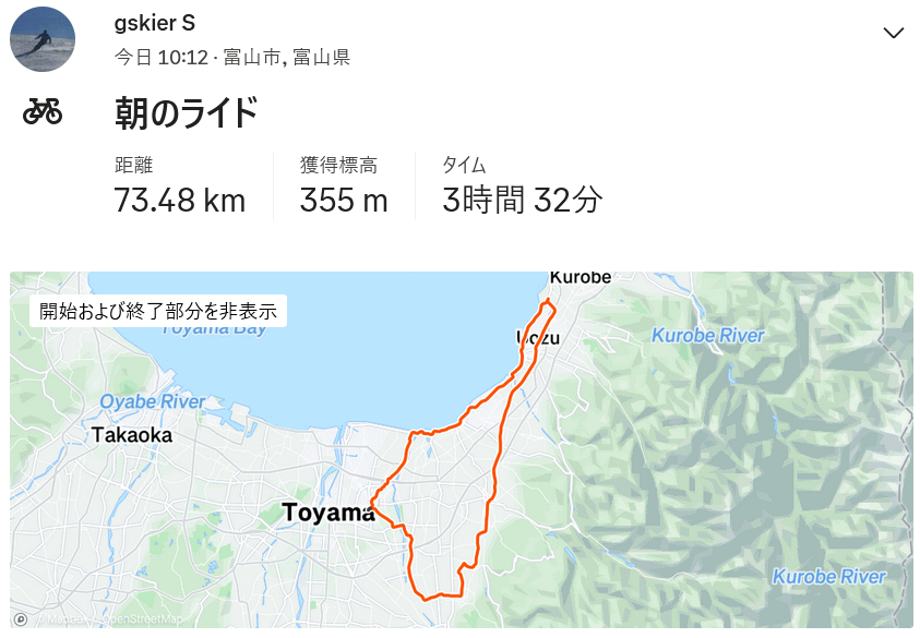 こころ旅〜こころの風景〜 富山市・立山町・魚津市 73km 2024年11月21日 火野正平さん(75歳)が11月14日に亡くなったことが昨日報じられた。自分にとって彼は役者では無く、番組「こころ旅」専任の即興脚色家を兼ねた自転車乗り…かな。番組は2011年2月にプレ版が、4月から本放送番組が始まり(東日本大震災でのルート変更に強い印象あり)、朝版はほぼ毎日視聴していた。番組開始から1年半遅れで自分自身もロードバイク乗り始めたので、自然とさらに熱心?な視聴者になっていった気がする。火野さんは知人でも親戚でもないので訃報には悲しさは一切無いものの、画面の中とは言え毎日の様に顔を見て声を聞いていたからだろうか、芸能人が亡くなってこれほど寂しいのは初めてであった。この秋はピンチヒッターでの放送が始まったもののウームやはり違うわけで、悲しい手紙も楽しい手紙もサラリと読みつつそれでも手紙の思いにちゃんと寄り添っていた火野正平は唯一無二の存在だったと再認識させられた。年二度の旅が終わる度に次の放送開始を楽しみにしていた長寿番組がまさかこんな形で終わりを迎えるとは…残念ではなくやはり寂しい。今朝は想定外の好天、放射冷却で冷えたが寒くなくなった10時過ぎに出発、自分には定番の富立大橋からのスタート、富立大橋は番組初年2011年の富山県3日目の目的地だった。この場所から次に近い「こころの風景」は地鉄釜ヶ淵駅に向かう。2021年999日目の場所だった。子どもが宿舎に入る前に家内と毎日電車で通って降りる駅で家内にはとても思い出深いはず。さらに次は魚津ミラージュランドの観覧車へ、少し距離を走りたく片貝川布瀬川の落合橋まで足を伸ばし湾岸から向かう。魚津の観覧車は富山県民なら皆何かしら思い出があるはず。蜃気楼ロードから富山方向に雨のシャワーが見え、魚津でポツポツと少し降られ、滑川の高月で雨足が強くなり民家のカーポート借りて雨宿りさせてもらう。雨が止んでも路面が濡れてるためBORAには厳しい条件、路面が乾くまで時速10〜12キロの水しぶき上げない速度をキープ、常願寺左岸からようやく普通に走れた。西の空が怪しく、寄るつもりになってた1192日目のこころの風景・古志の農道はパスした。追悼ライドは今日限りであるが、火野さんのご冥福を祈ります。 |
