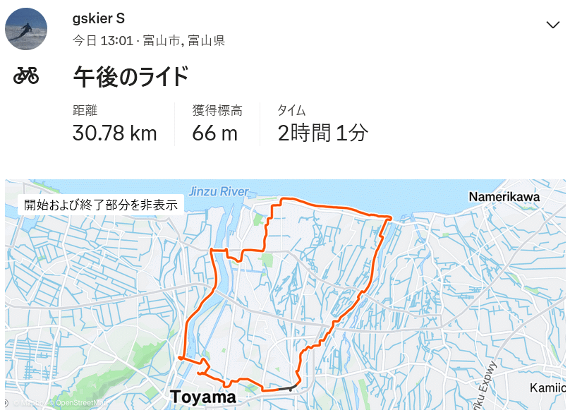 家内のTCR納車、神通左岸〜海岸CR〜常願寺左岸 30km 2025年 6月16日 13時出発、家内のTCR納車でGiantShopへ、先に地鉄で向かってた家内は担当の千住さんからレクチャー1時間強、先方の勘違いあった様でフラットペダルは付属しており、三ヶ島のフラットペダルをキャンセルした分でボトルケージを購入。シートポストは長過ぎて数センチカットしてもらってフィッティング。ショップ前〜環水公園で少し走ってから神通川左岸へ移動、北大橋の気温計は33度と激暑、南西の風に乗って一気に荻浦橋、馬場記念公園〜森地内の車の少ない道で海岸通に抜け浜黒崎の自転車道へ、サンビーチ跡あたりで持参おにぎりの遅い昼食、今川橋から常願寺左岸で帰宅の約30km、家内の初ライドは約25km…やわやわと距離を延ばしていきましょう。今日は真夏の暖気が入り込んでとても暑く、しかも風も強くて初ライドには厳しい気象だった。ボトルゲージ付けてもらって自販機のペットボトルを入れられたので助かった。帰宅後は走後の最低限のメンテナンスについて自分の完全自己流だが家内にもやってもらう。この後はライト、サイクルコンピュータ、携帯用の予備チューブや工具、保冷ボトルetc、それなりにまだ準備は必要。ある程度慣れたらホイールをリドレーで使ってるキシエリに換えましょう |