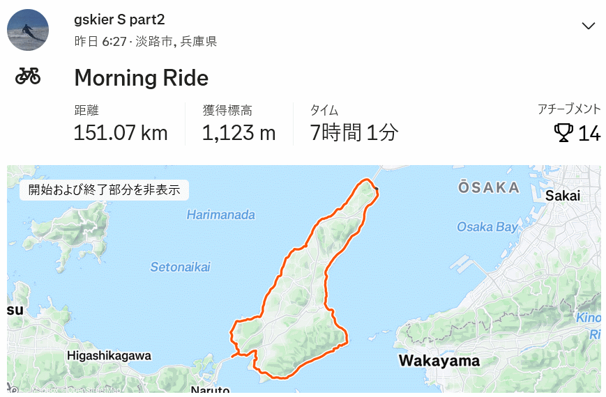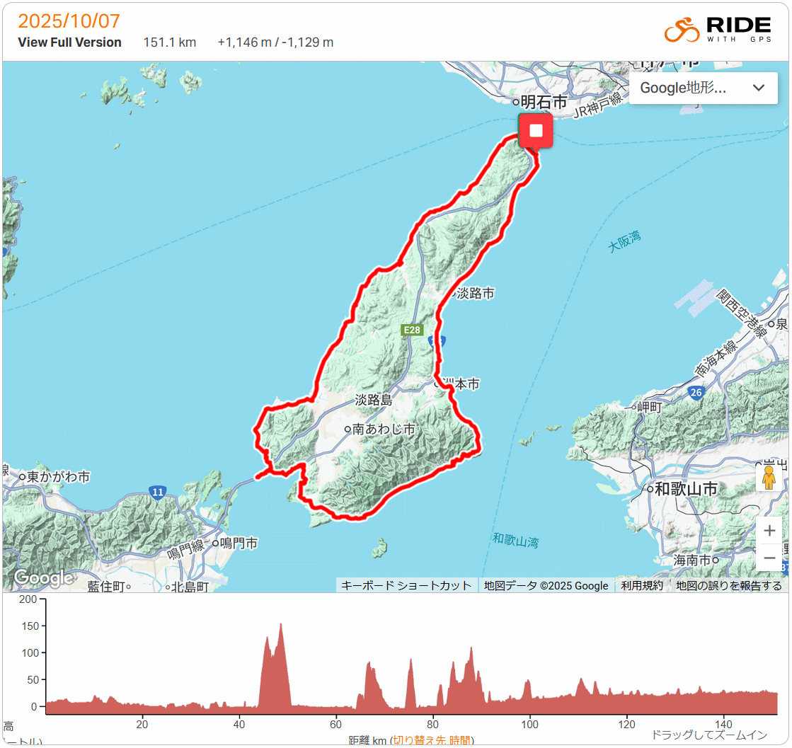 淡路島一周 正しく岩屋港スタート&ゴール 151km 2025年10月 7日
