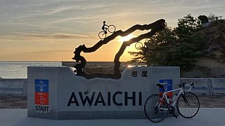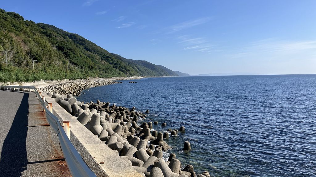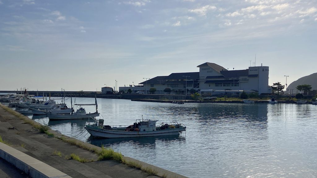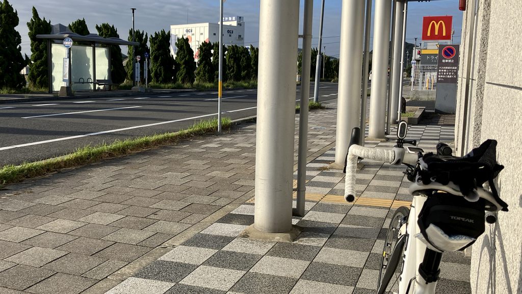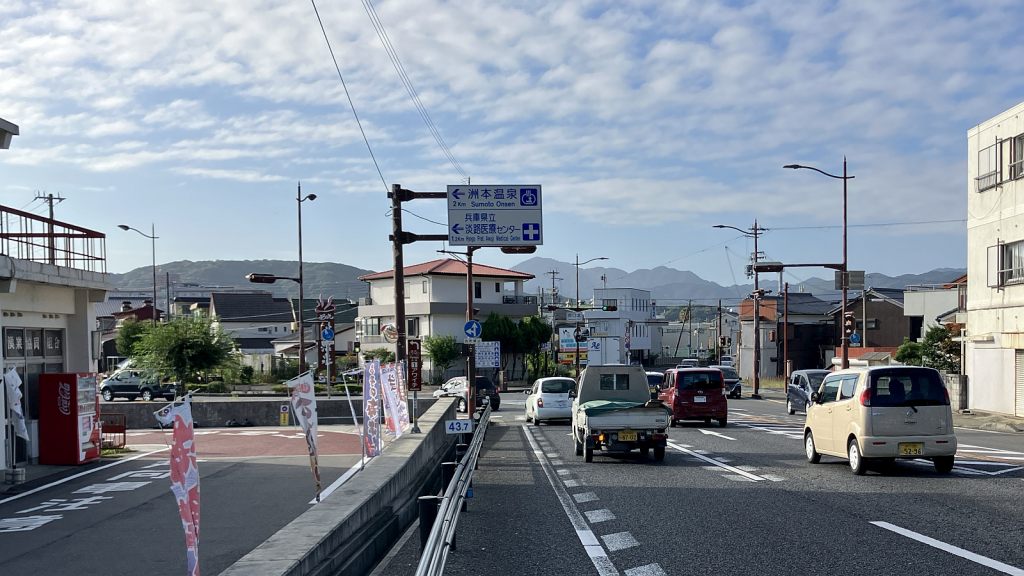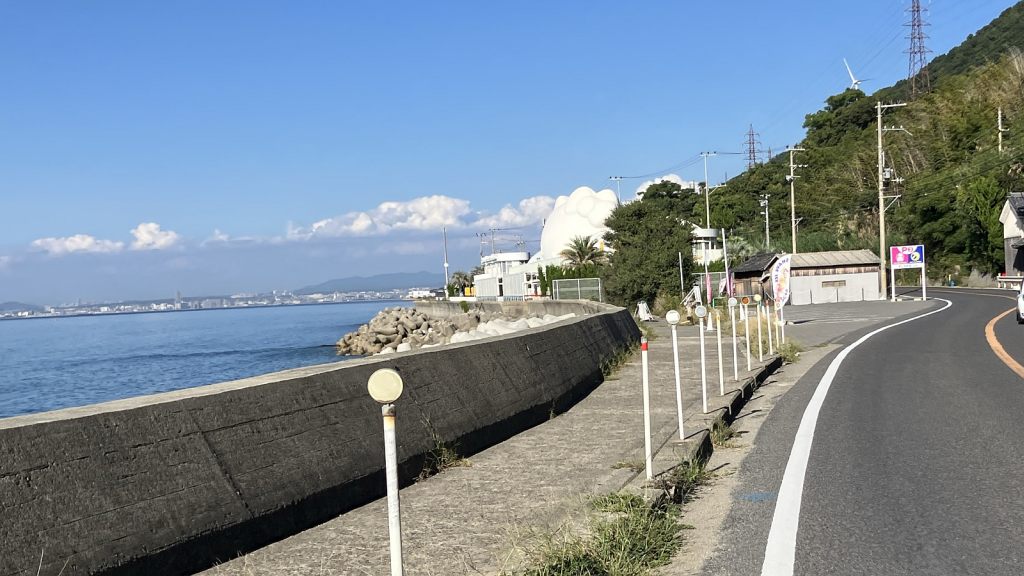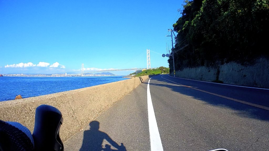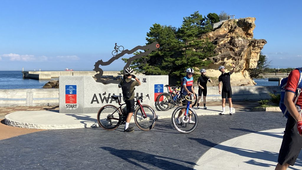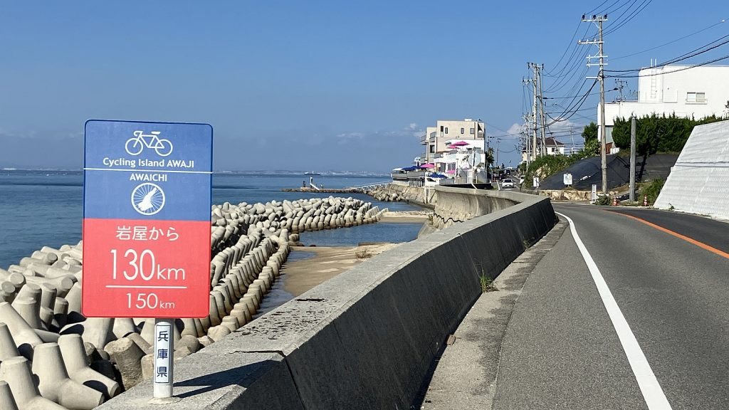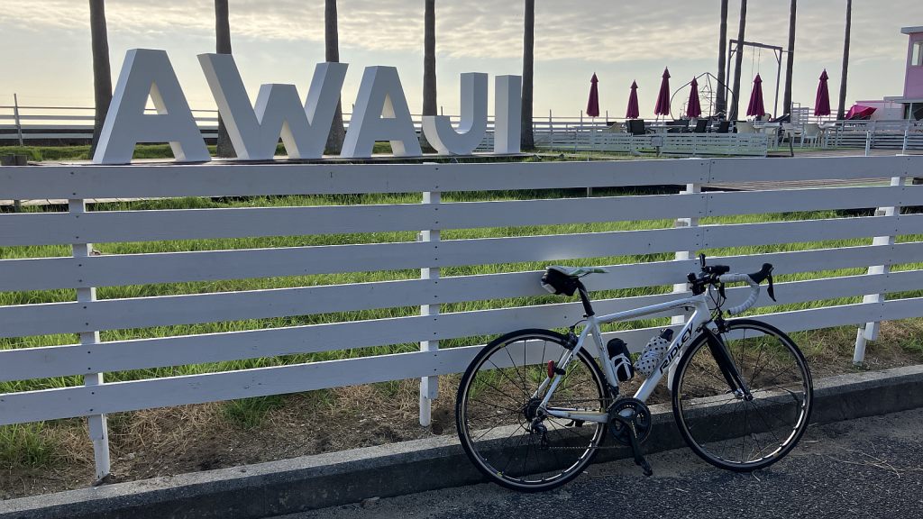 7日5時起床、ちょうど小さな漁船が幾艘も出航する様子を眺めつつ歯磨き、トイレを済ませサイクルウェアに着替える。料金所を出て岩屋漁港駐車場へ移動、今年5月から有料化されたおかげで釣り人やサイクリストの無法的長時間占有が減ったらしい。6時出発の予定だったが、もたついて6時半頃出発。ちょっと北側にある旅客船の埠頭近くにあるアワイチのスタート&ゴールのモニュメントへ…変則?スタートとしたビワイチと異なり「正しく」スタートする形は気分良し。大阪湾を左手に見ながら走る。水蒸気のせいか対岸まったく見えず。海沿いはリゾート施設多く、安藤忠雄デザインの夢舞台がその中心か。日本酒蔵らしき建物発見、銘柄は「千年一」、島内にはもう1軒・都美人酒造が南あわじ市にあるとのこと。朝の通勤時間帯となりR28は交通量が次第に増えてきて、身体より神経が疲れてくる。淡路市中心部に入った22km地点、トイレと自販機のあるバス停近くのベンチで補給休憩。エネルギージェル少し舐め舐めペットボトルを早めの交換。