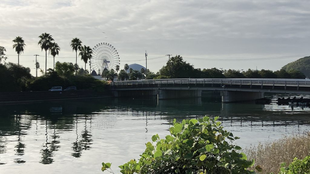 いよいよ淡路島西岸に到達 弁天島への太鼓橋は閉鎖とのこと