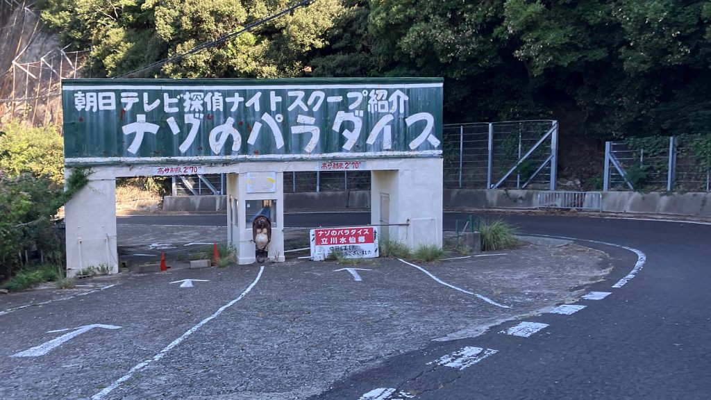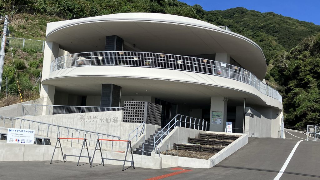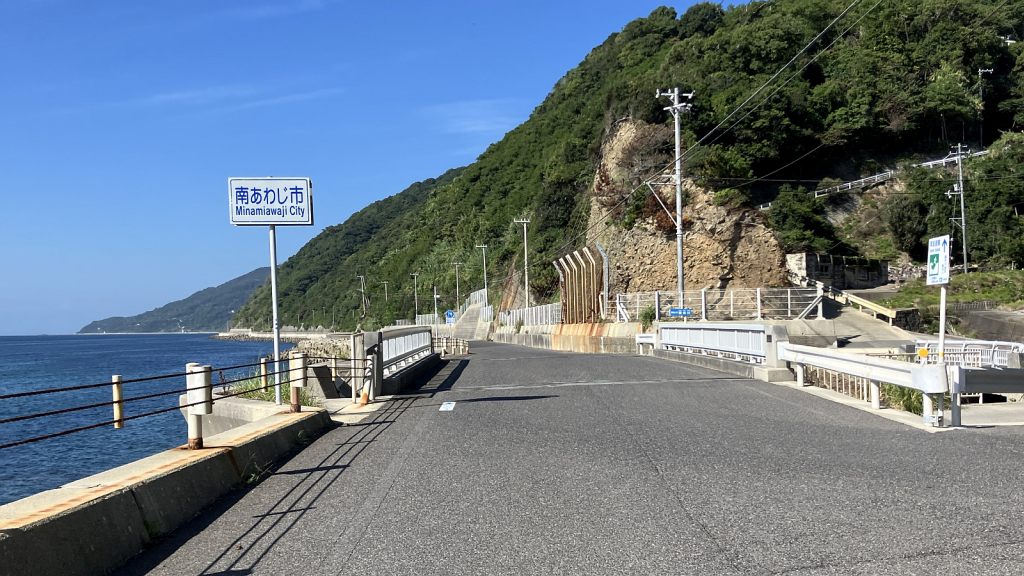 由良から先は本日最長のヒルクライム、淡路島の南側の山を地図で俯瞰すると…中央構造線北側の紀伊半島・和泉山脈と四国・讃岐山脈の間に連なる山なのである。関空へ向かうジェット機が何機も見つつ1段目の坂を上り切るとナゾのパラダイスと大書された立川水仙郷の廃墟、昨年オーナーが亡くなり閉鎖された秘宝館的な施設だったとのこと。2段目の坂でニホンジカの♀と遭遇、人慣れしてるのか一瞥後に完全無視された。本日最初の人生下り坂最高で島の南岸に出る。兎に角、海・道・山以外には何も見えず北海道と言われても信じたくなるほど。紀伊水道を左手に見つつ只管西進、すれ違う車もほとんど無く…そのせいか全般に舗装が粗くコンクリートの部分もあって尻が痛くなる。止まらなかったが休憩できそうな施設はモンキーセンターと灘黒岩水仙郷の2か所のみ。関西では最高級のハモ産地として知られる沼島への渡船が出てる土生港の灘ターミナルで3回目の休憩。ペットボトル交換は次の坂上の「世界一のコーラ」でと考え、エネルギージェル舐めながらベンチで身体を休める。