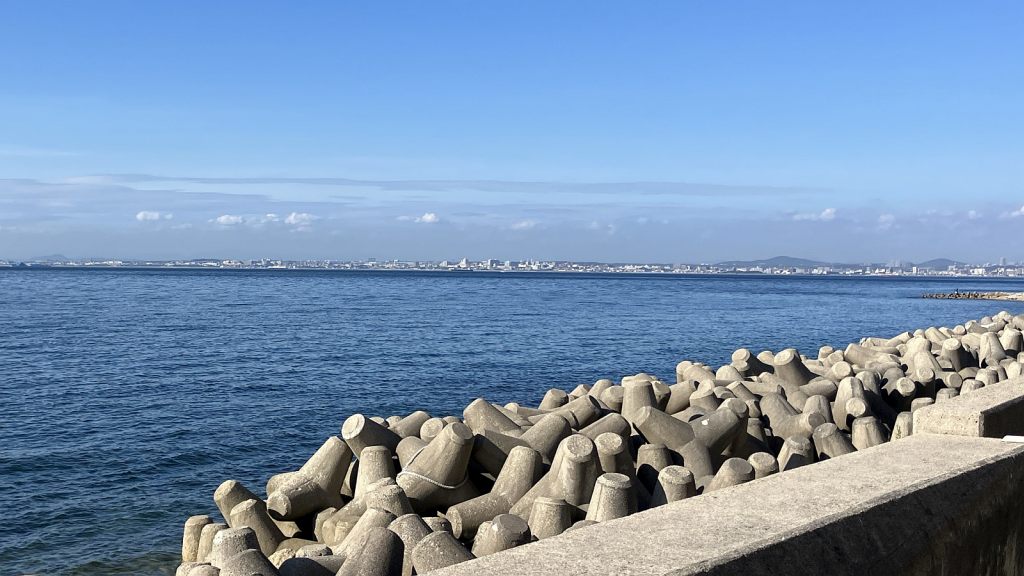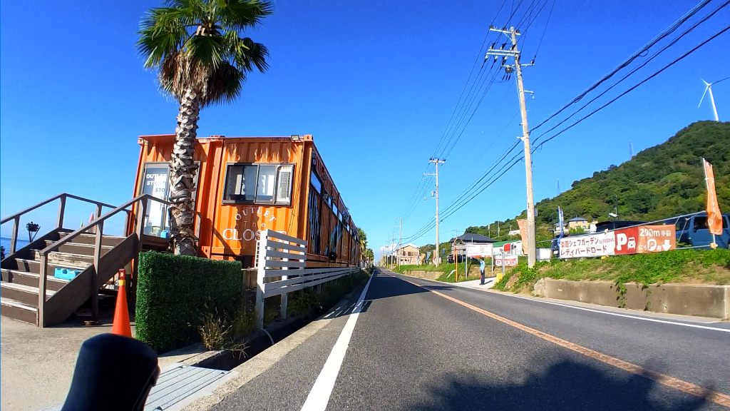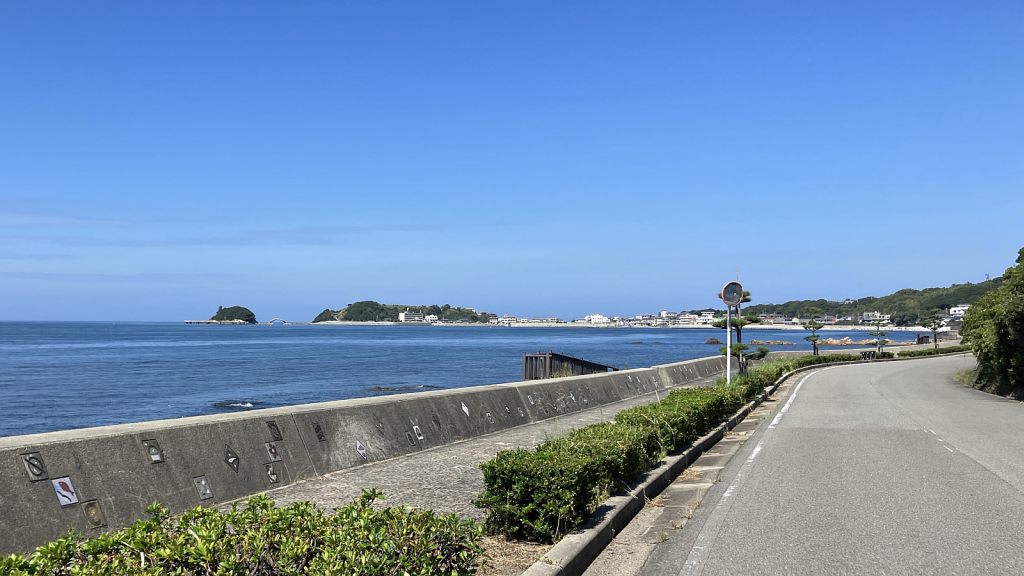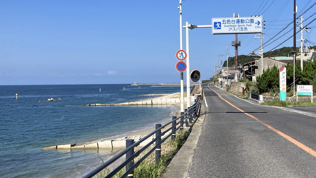 再スタート間もなく淡路市に突入、K31は完全に平坦にはならず小さなupdownがまだあり、右膝はつらいが上れば絶景!と思うしかない。残り30kmを過ぎると江井地区、線香の生産量日本一だそうで、津井松帆の瓦と言い淡路島と仏教との深い繋がりを想像。125km地点あたりからはカフェや宿泊施設が増えリゾート感出てくる。ゴールまであと1回だけ休憩したく、育波漁港近くで旧道の住宅地に入り自動販売機を探し、そのすぐ傍にあった戎広場で最後の補給休憩、ペットボトル交換しつつ残りのエネルギージェル飲み干し、アミノバイタルも補給。ゴールまではたった17km、魚津や新湊から自宅までより短いぞ…と。