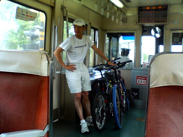 宇奈月行きの列車内 自転車が倒れない様に押えるのが義務 |