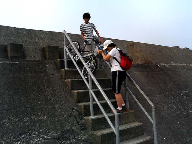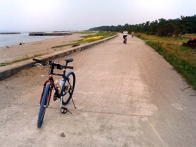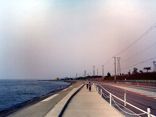 間もなく海とお別れ さらに家まで8.5km、これがしんどかった〜。 |
