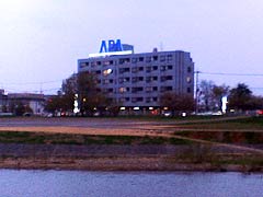対岸の高台に自衛隊の建物。 |