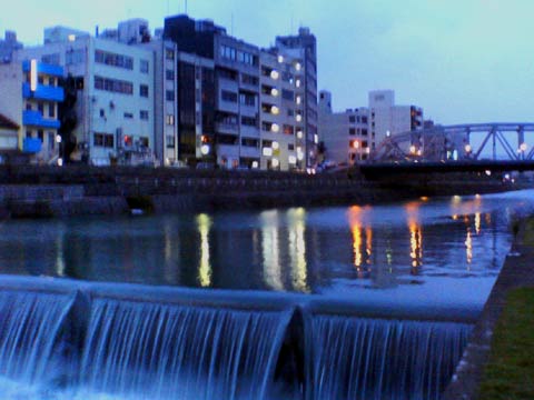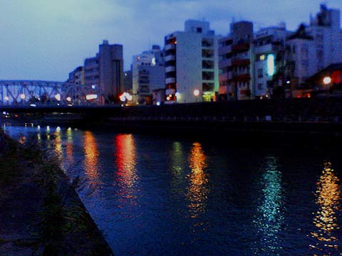 (27)街の灯り映し〜 金沢とは言え、水に映る夜景には旅情を感じます。 |