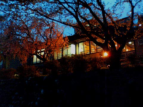 (29)料亭の灯りと枝垂桜 往路の(9)の場所です。もっと明るい時間にこればよかった〜。 |