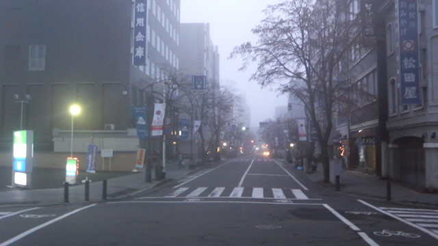 初冬早朝、濃霧の松本市街JOG2007.12.2