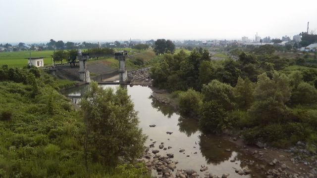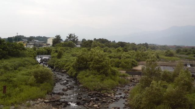 関川の支流(河川名失念)を渡る