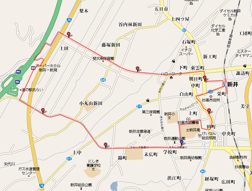 あらい道の駅を基点に、妙高市・旧新井市内をジョギング。富山市のアンパンマン市長が「コンパクトシティ」を目指すと言うが、旧新井市こそ正に美しくまとまったコンパクトシティであった。農業地に囲まれた市中心部には旧北國街道やJR新井駅を中心に、商店街、公共ゾーン、文京地区ときれいにまとまっていた。