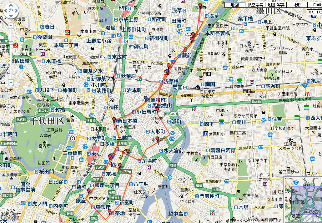 江戸下町ジョグ 兼 東京マラソン下町コース部試走 2009.6 入梅直後の江戸であったが、出張二日目の朝は晴れてくれた。八丁堀から浅草まで往復ジョグ。銀座中央通を走れば、神田〜品川間に続く東京マラソンコースの核心部でもあり、来年当選出場できるなら?と試走も兼ねた。下るだけの都庁〜西神田、フラットな往復コース田町〜品川を除けば試走ほぼ完了。肝は埋立地を結ぶ橋のアップダウンであることが明瞭に分かった。タイムを狙えるコースである。しかし2010年は新型インフルのパンデミックで大会そのものが中止の予感大。往路は八丁堀から築地を回り、銀座⇒京橋⇒日本橋と大繁華街を走るも、CORED前で右折するのをうっかり直進、気付けば「日本橋」まあいいやと、江戸通を道なりに小伝馬町・馬喰町と進み、浅草橋でコース復帰、蔵前・厩橋・駒形、浅草到着。浅草寺に参拝し、東京マラソンコースで戻った。復路はケータイ内蔵デジカメが不調、メモリに保存できたりできなかったり・・・メモリカードのエラーの模様、PCでメモリを読めば浅草寺以降のファイルが破壊。これは困った。次回からどうしよう | ||