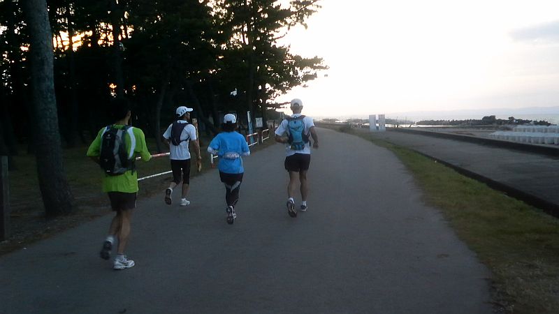 新潟県糸魚川市市振から富山市総合体育館までの65kmを走るLSD、勝手に「第1回富山湾岸ウルトラマラニック」を名乗って開催しました。参加8名、完走4名、仕事等事情により区間敢走4名、お疲れ様でした。休憩含む走行時間も8時間を切って、予定通りのタイム、万々歳。