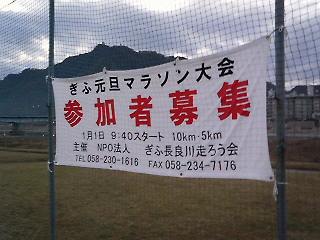![]() 走路終点(むしろ起点か)、長良川走ろう会主催の元旦マラソンの案内が沢山貼ってあった |