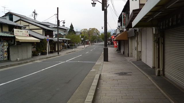 嵐山のメインストリートも朝は静か