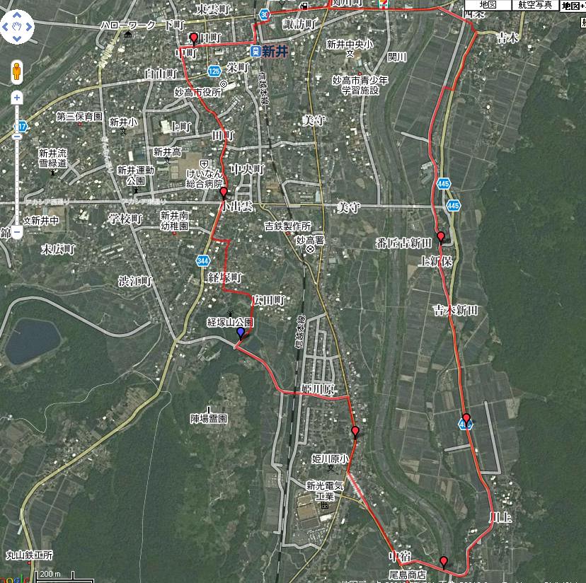 ちょうど2年ぶりの妙高市は新井でのジョギング、子どもの自転車伴走付き。前回は新井市街&郊外西部だったので、今回は東部にあたる関川右岸の県道455号沿いから走ってみた。田園風景の中をじわじわと上る県道はのんびりした中にも脚にはまずまず負荷が掛かってトレーニングには◎。途中、真夏なのにハヤブサに出会い、何ともラッキーであった。帰路は関川左岸、飯山街道から経塚山公園に上がり、北国街道沿いを戻った。左岸に渡ってから強烈な日差しとぐんぐん上がった気温にへばり、新井駅前で軽い脱水症状を感じ、ホテルに戻って水1リットルの一気飲み。もう若くないので無理しない様にしなければ・・・。ホテル→旧R18南下→新井柿崎線の橋で関川右岸へ→吉木小学校前→県道455号沿いに河岸段丘から遡る→4kmほど道なり→橋を渡り関川左岸へ→飯山街道→姫川原→経塚山公園→北国街道→新井駅→ホテル 本日のコース、約10km⇒