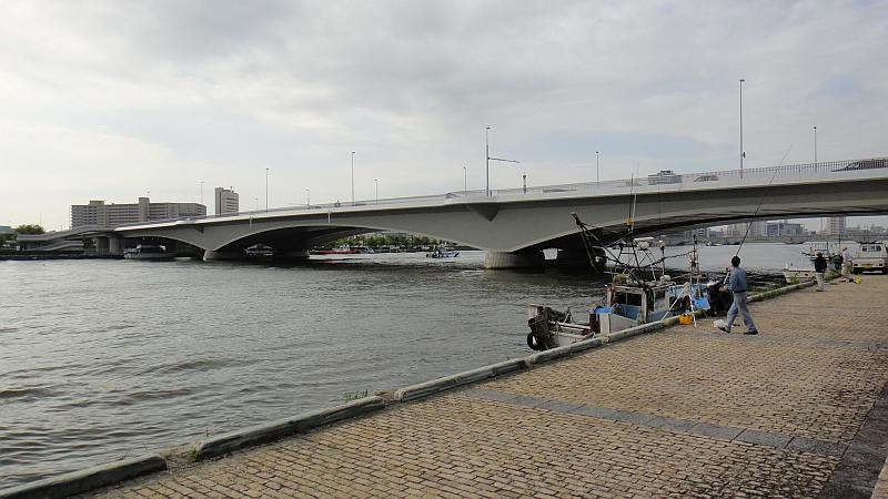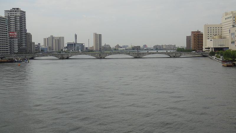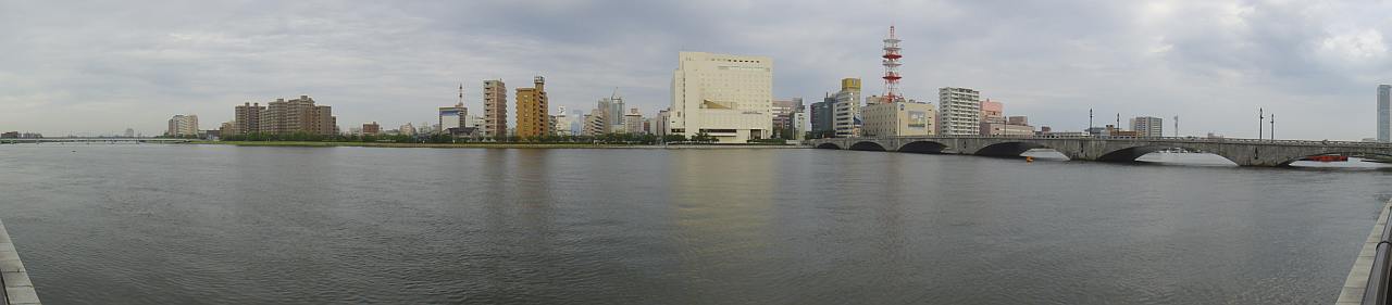 柳都大橋から上流方向、万代橋を臨む
