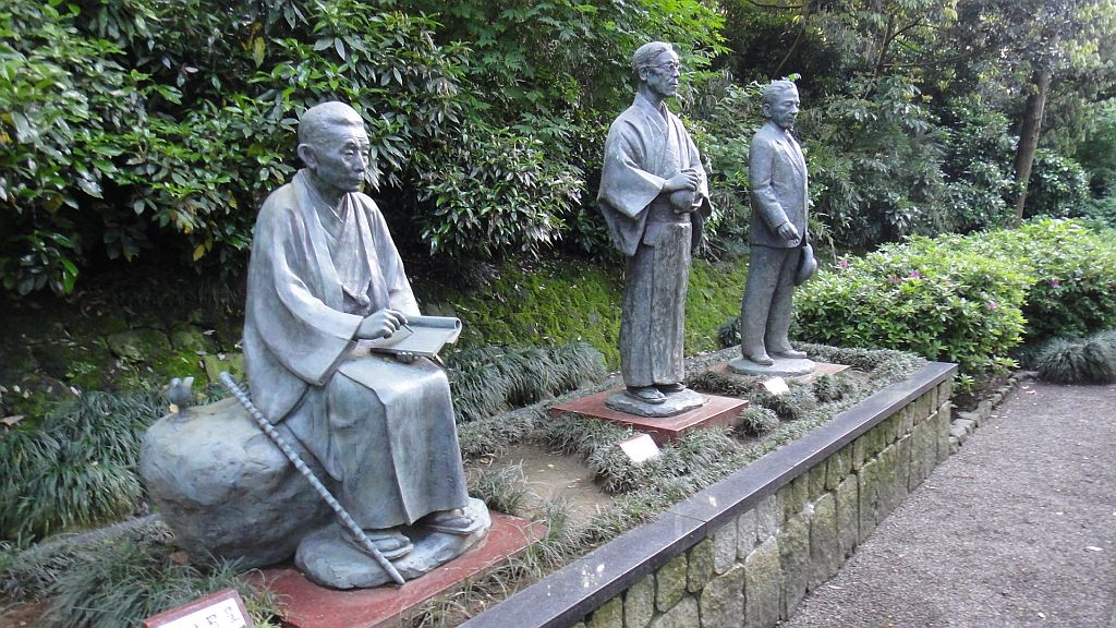 出ました三文豪、本人達が想像していたはずもないですが、観光資源として銅像にされてます
