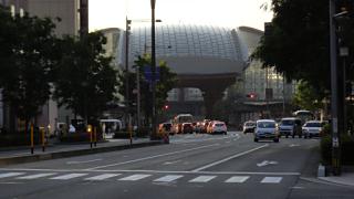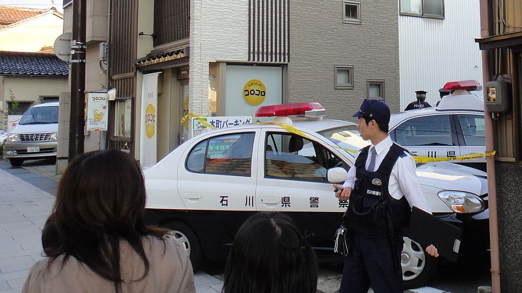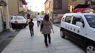 子供達が見たい見たいと騒ぎますが、安全のため警察が非常線を張ってました