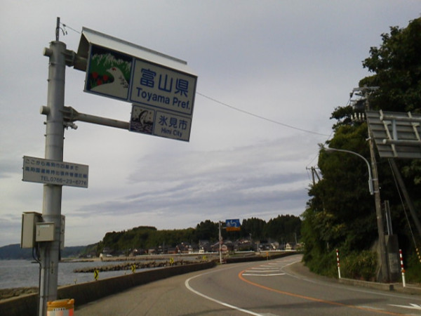 県境の町その1(石川県七尾市)100km (2012.9.9) 7:10自宅発、小杉戸破まで旧北陸街道や裏道、旧R8で高岡、R160で氷見へ長慶寺からの上りがしんどい。下田子で補給休憩、R415とR160で一気に県境を目指す。トンネルはTACXのフロント・テール・ウインカーライトを使う。灘浦荘あたりは道幅が狭く恐怖、九殿浜の登りが意外にキツイ。県境で補給休憩後、富山湾岸UMコースを逆から辿る。内反小趾が痛み出す。先週と同じく2日連続で走ると2日目に痛むのか? 新湊以降が強烈な逆風+気温30度オーバー、最高気温は35度を超えていたらしい。100km超を5時間強。ペースは大したことなかったが、アキレス腱が痛い!