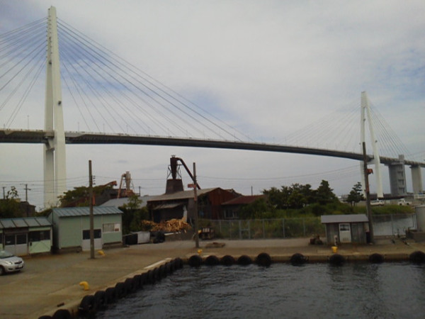 twitpicへの投稿から(5) 県営渡船から車が通り始めた新湊大橋を望む >HOMEに戻る|>戻る |
