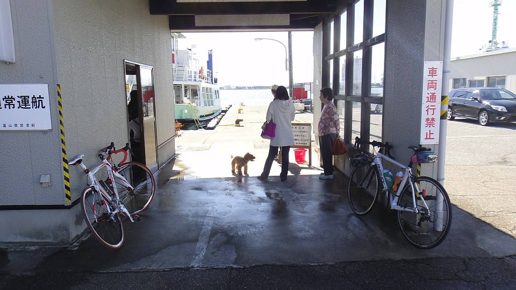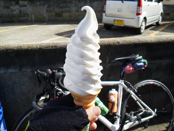 (2012.10.8) 鉄下駄R500をアルミカーボンコンポジットのRS80に履き替えての初走行。S林さんと五福のトイザラス前で待ち合わせ呉西をサイクリング、朝7時は半袖では寒かった。先週の短縮コースで小矢部福岡高岡新湊85km。ソフトクリームのまじまは朝9時半でもうオープンしていた。渡船で営業T君ご一家と一緒になる。RS80は加速が軽い。緩い坂はシフトダウン不要。無風フラットならペース維持もプラス2km/hは期待できる。5750はインナーを使う機会無く変速性能は不明。タイヤは100km足らずでは皮も剥けず。
