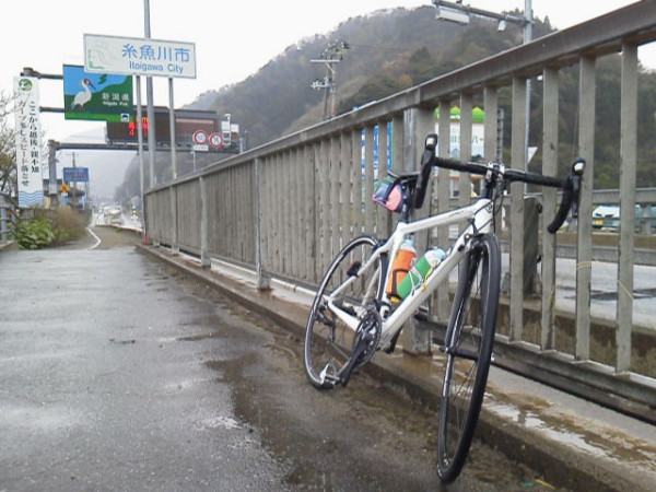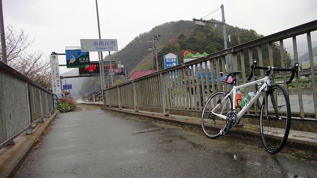 4ヶ月ぶりの新潟県境 この時点でもうずぶ濡れ、低温下で富山までのライドは過酷であった。いったい何の罰ゲーム?