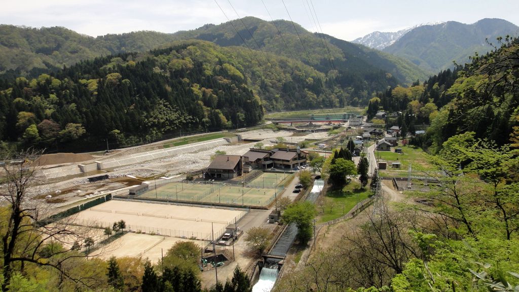 みのわテニス村、対岸は魚津市