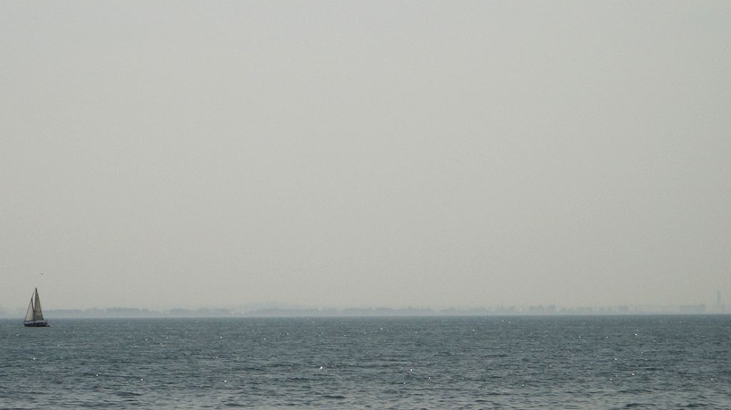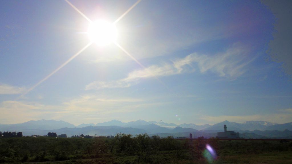 富山方向の蜃気楼 撮影したときには終息気味だけど僅かに上に延びている、生地側のほうが大きかったかな?