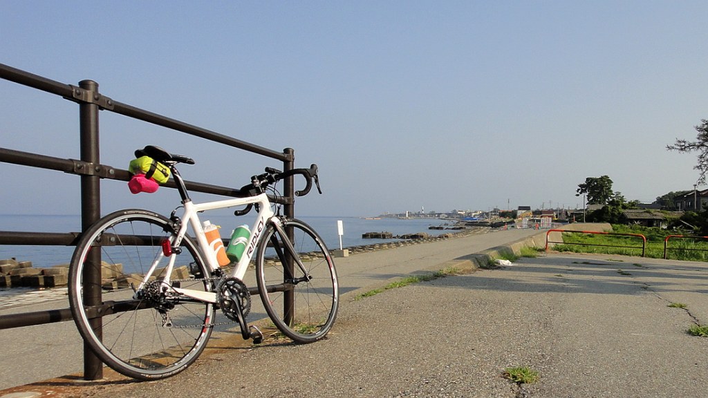 魚の駅生地まで72km (2013.8.14) 盆休。朝5時半起床、リドレーで生地まで72km。50km過ぎにもうアキレス腱が悲鳴。当分は40km程度にしておかないとダメかも。東なら魚津水族館、西なら高岡まじま(笑)あたりか。