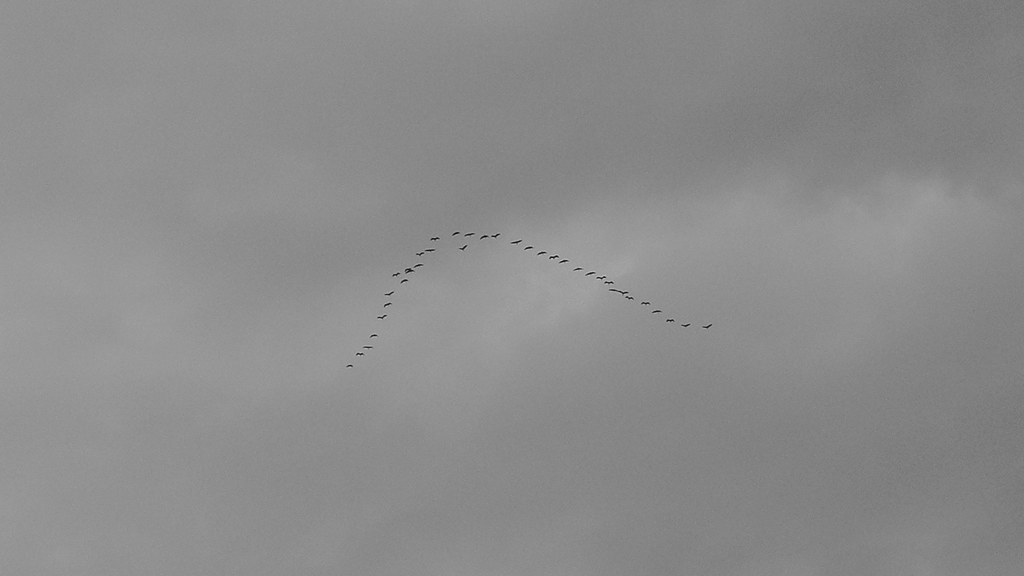 小杉で見掛けたヘの字編隊 サギ科の様だが高度が高過ぎて特定できず