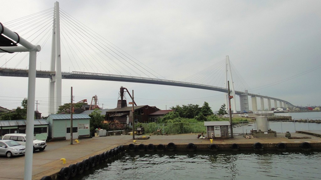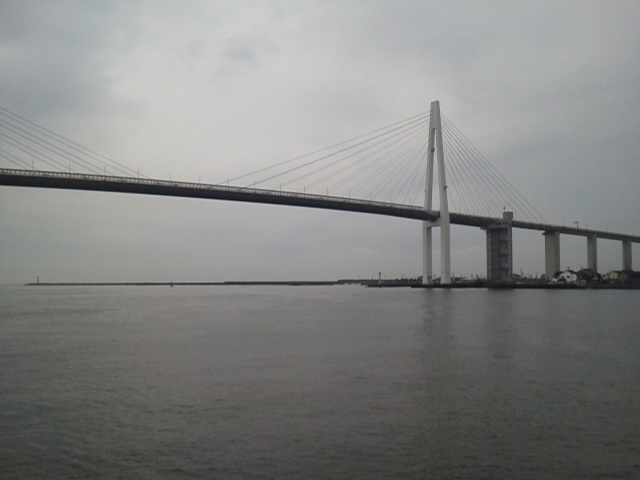 新湊大橋 自転車だと渡る気がしない。やはり渡船が便利だね。今日は「こしのかた」だった。バルバのウェア着た2人と同船。