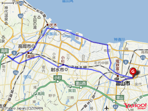 高岡方面 70km (2013.9.7) 午前の降水確率20%、雨は夕方からの予報を信じて、リドレーで西へ向かうも小杉でいきなり雨、バス停や小杉駅で雨宿りしつつ何とかかんとか高岡へ。新高岡駅あたりからまた降られ、佐野地内の新幹線高架下で雨宿り。小降りになってから予定変更、脳内ラビリンス化してる県道58〜能越道高岡IC間の整理探検。県道58が高岡ICまで延びるまでの経路は把握。万葉道の駅でトイレ休憩、まじまの十段ソフトで朝食、10時50分の県営渡船乗船、市体育館経由で帰宅。またGPSロガーの電源が途中で落ちていた。携帯方法を考え直さねば。 <ラビリンス→最短路> 小杉方面からは道なりでT字路に突き当たったら右折、石塚の交差点を左折、T字路に突き当たって右折で東五位小学校前の交差点に出る。逆方向からは分かり難く、東五位小学校前の交差点左折後、一個目のカーブミラーで左折(鮨正まで行かない)、石塚の交差点で右折(この方向からは石塚の表記無く、オリジンと神社が目印)、JR北陸線を渡ったらすぐ左折で道なり。 本日の走行 by ルートラボ