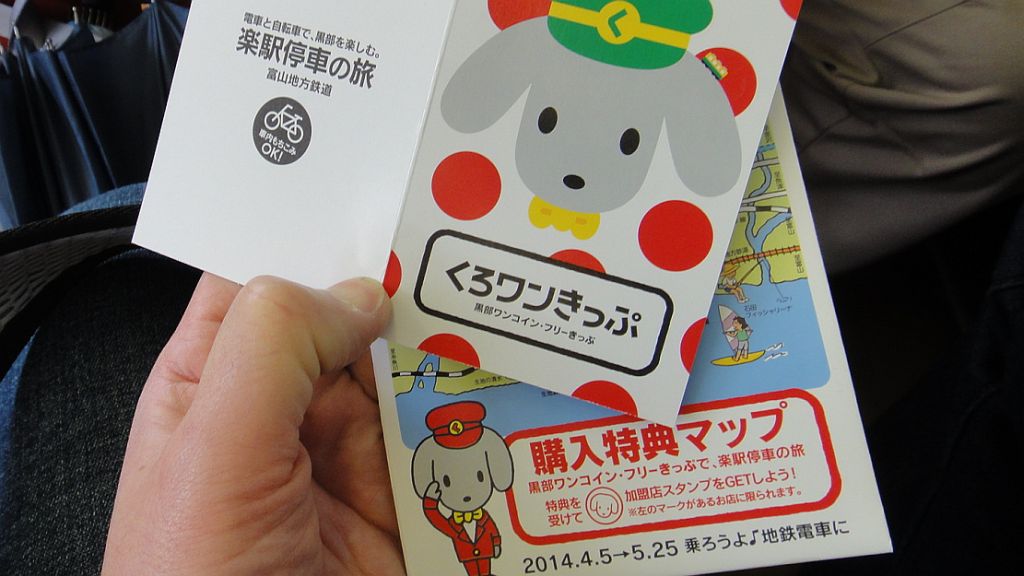 【黒部】ダブルデッカーおけいはん+くろワン+あいらぶ湯パスポートの旅 2014年4月5日 絵夢の会のちいさな個展シリーズを観に黒部へ。妻子は地鉄大株主が持てる地鉄全線無料定期、自分は小株主に年間5枚配られる株主優待券で電車代は無料であるが、事前に調べると「春のくろワン」なる企画で4/5〜5/25の土日は黒部市内の地鉄電車が1日500円で乗り放題、さらに「あいらぶ湯パスポート」なる企画で4月20日まで宇奈月温泉の入浴券3枚綴りが1500円(一人当たり500円)と知り、プチ鉄道旅行。(電)東新庄707発→宇奈月温泉830着、ダブルデッカーおけいはんに発情者いや初乗車、何だかウレシ。宇奈月温泉駅前のモーツァルトで朝食かなりのボリューム、自分の分1枚のくろワン切符を購入。10時から営業の花いかだを目指し、(電)宇奈月温泉922発→東三日市949着、黒部市内は雪。景勝桜を初めて知りつつの散歩、絵夢の会のちいさな個展シリーズ・内堀君の展示を観つつ花いかだ(セントベリー)のコーヒーを頂く。そこでくろワンのスタンプラリーに家内が気づき、とりあえずスタンプ収集開始。店を出ると清々しい青空。(電)電鉄黒部1055発で宇奈月を目指しつつ、宇奈月麦酒館で昼食にしようかと思い付いた時には列車が下立駅から動き出し、時刻表を見れば次の愛本に1115で降りれば1120の上り列車に乗れるぜーと、(電)愛本1120→下立1122、この列車ではくろワンのゆるキャラ車掌が乗車勤務中、こんなに力の入ったイベントだったとは…。宇奈月麦酒館ではバイキング以外のメニューが無くそこまで空腹でもないので、妻子はビールソフトクリーム、自分はカモシカを一杯(夜は飲み会なのに)。(電)下立1208→宇奈月温泉1221、宇奈月温泉は雪。モーツァルトで朝の分のスタンプを押してもらい、昼食は「ささや」なる食堂でラーメン、あしたの素がたーっぷり入ったスープに子どもがギブアップ。いやー美味しくなかった(笑)。ニューオータニであいらぶ湯パスポートを買い真っ昼間の温泉、風呂はほぼ貸し切り状態。(電)宇奈月温泉1422発で帰路に、この時点で駅スタンプ4個でプレゼント応募に1個不足(東三日市で押印してない)、まぁいつか自転車でと思っていたが時刻表とにらめっこ。んで(電)電鉄石田1457下車、ちょっと周辺散策、(電)電鉄石田1510→長屋1518、(電)長屋1522→荻生1524、徒歩で東三日市へ、(電)東三日市1552の特急に乗車。駅スタンプ8個と参加店スタンプ5個をゲット(笑)。こんなに地鉄に乗ったのは初めて。 電鉄富山に着いて花見にでも行くかと歩いていると、市内軌道のレトロ車両がちょうど目の前に、迷わず乗車。たったの二駅だけ乗って桜橋下車、松川縁を花見散歩、お嫁さんを二人も見掛けてこりゃめでたい。富山駅前までぶらぶら歩きシアトルズベストコーヒーへ。妻子は帰宅、自分は読書で暇をつぶしてそのまま「いたち川RC総会」へ。ランナーでも無いのに沢山飲んで良い気持ち。家内の迎えを待ちつつ、市立図書館付近の夜桜を眺めて贅沢で長い一日終了。 【くろワン続き】 プレゼント応募には切符のシリアルナンバーが必要、スタンプカードは3枚持ち歩き同行した妻子も押印してもらっていたが、くろワン切符は1枚しか無かったので応募できるのは1枚だけでした。が、5月25日黒部名水マラソンに家族で出場、ゴール後に宇奈月温泉で入浴するため電鉄黒部駅で再びくろワン切符を1枚購入、これで切符は2枚となり自分と子どもの名前でプレゼント応募、クジ運悪いので何も当たらんと思ってたけど、何と2人ともにプレゼント当選のハガキが(笑)。自分には「魚の駅生地の塩物セット」、子どもには「ムライの手作り黒部の塩(小90g)」、まぁ大した物じゃないだろうと思ってました。 【そして後日…】 黒部へプレゼントを受け取りに行きました(マイカーで…笑)。まずはくろワン主催の黒部まちづくり協議会がある黒部市勤労青少年ホームで 手作り黒部の塩90グラムを貰い、まぁこんなもんさ、ここまで来るガソリン代のほうが高いなーでした。次に魚の駅生地へ行きレジにハガキを渡しますとビックリ、でっかい発泡スチロールの箱を持って来られて、次から次へと魚の塩物をえぇ〜そんなに食べられるか心配になるほどに沢山沢山入れて下さり(そのイメージby魚の駅生地)、持てばズッシリ…ありがとうございました〜何でも応募してみるもんですね。