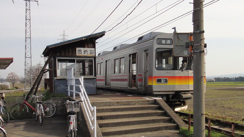 地鉄・田添駅 踏み切り待ちでやってきたのは京急のアルミ車両