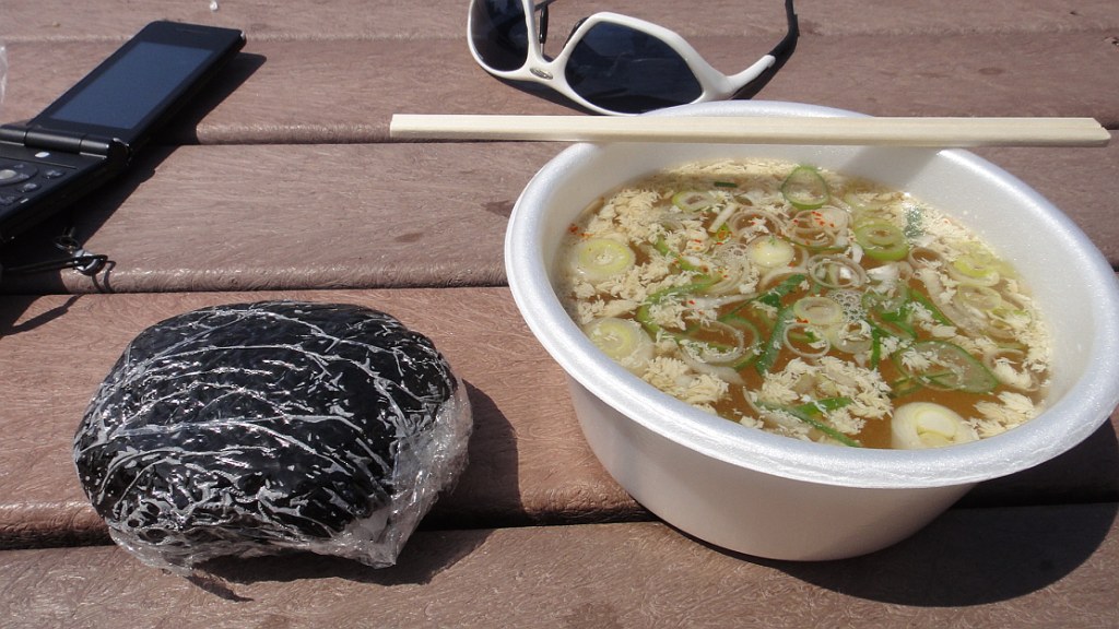魚の駅生地 カニ汁は足不要でお願いすると超大盛りの大サービス、オニギリは売り切れで持参で正解でした
