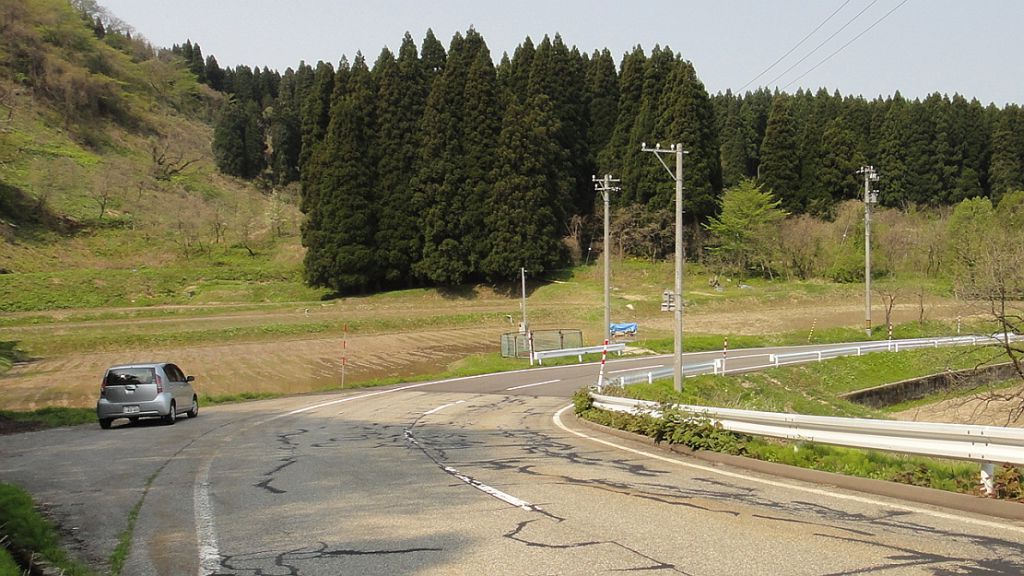 昨年の落車現場 短いガードレールあたり。舗装が新しくなっていた。